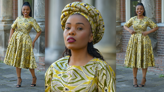 NEFERTITI BLUE AND BROWN MIDI DRESS