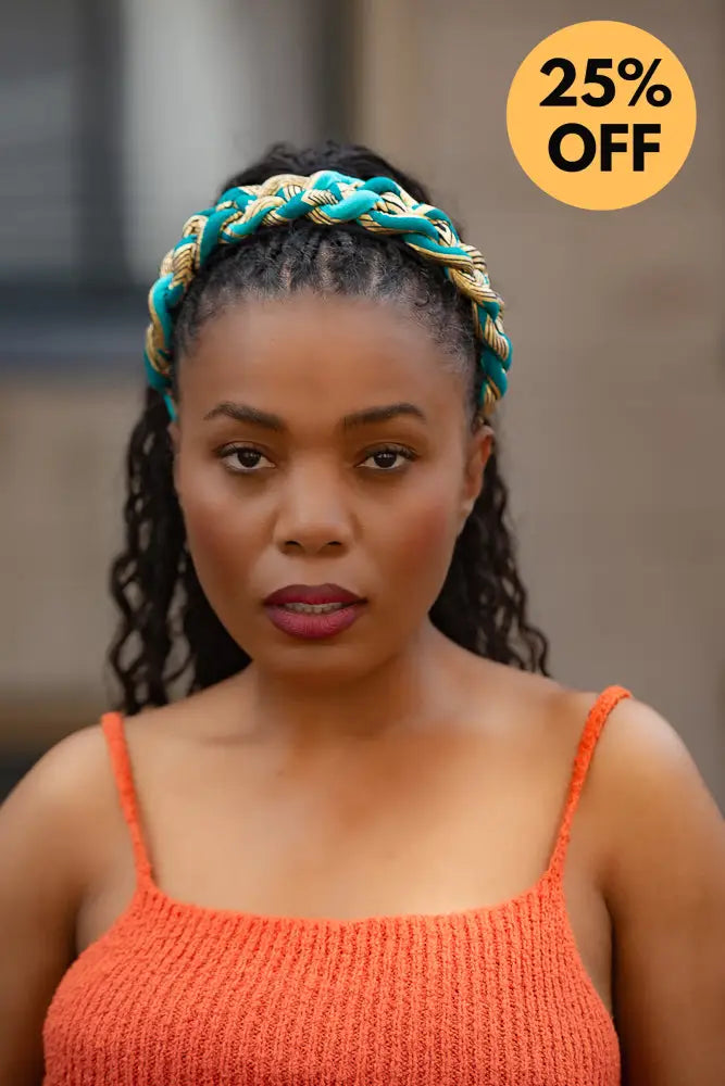 This isn’t just a headband, it’s a braided crown. Woven in deep navy, it wraps around the head like a halo of confidence. Bold, structured, and unapologetically regal.
