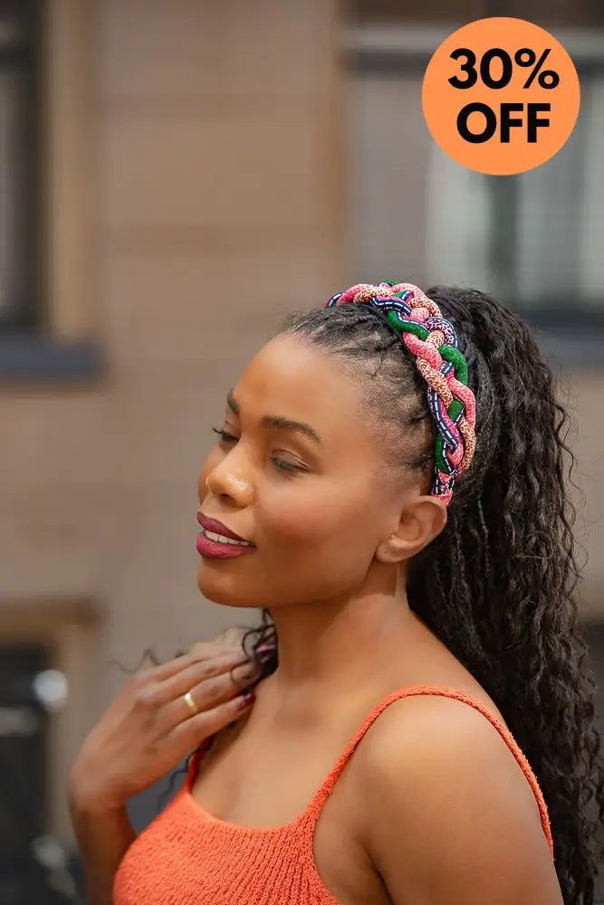 This isn’t just a headband, it’s a braided crown. Woven in deep navy, it wraps around the head like a halo of confidence. Bold, structured, and unapologetically regal.