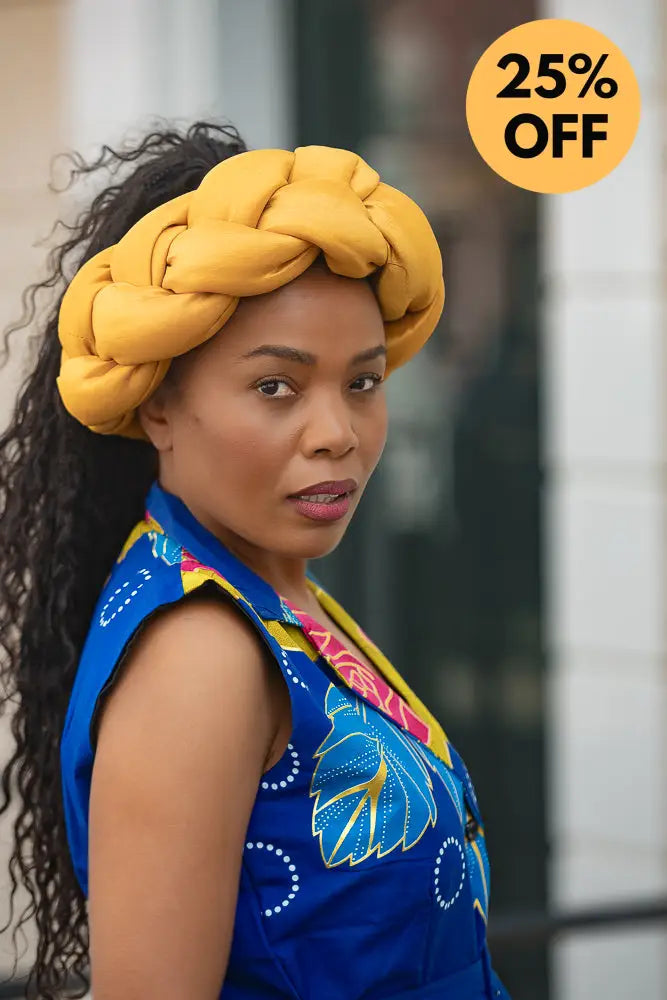 This isn’t just a headband, it’s a braided crown. Woven in deep navy, it wraps around the head like a halo of confidence. Bold, structured, and unapologetically regal.
