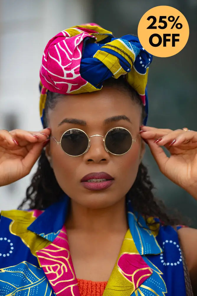 Our African headwraps are stylish, practical and keep hair intact all day long. They are easy to wear and versatile adding a new dimension to your everyday wardrobe. As African fabrics are colorful, headwraps made from them can enhance a rather simple dress. They are best worn with and complement matching African print garments. They are a must have for every woman due to the ease and glamour they provide.