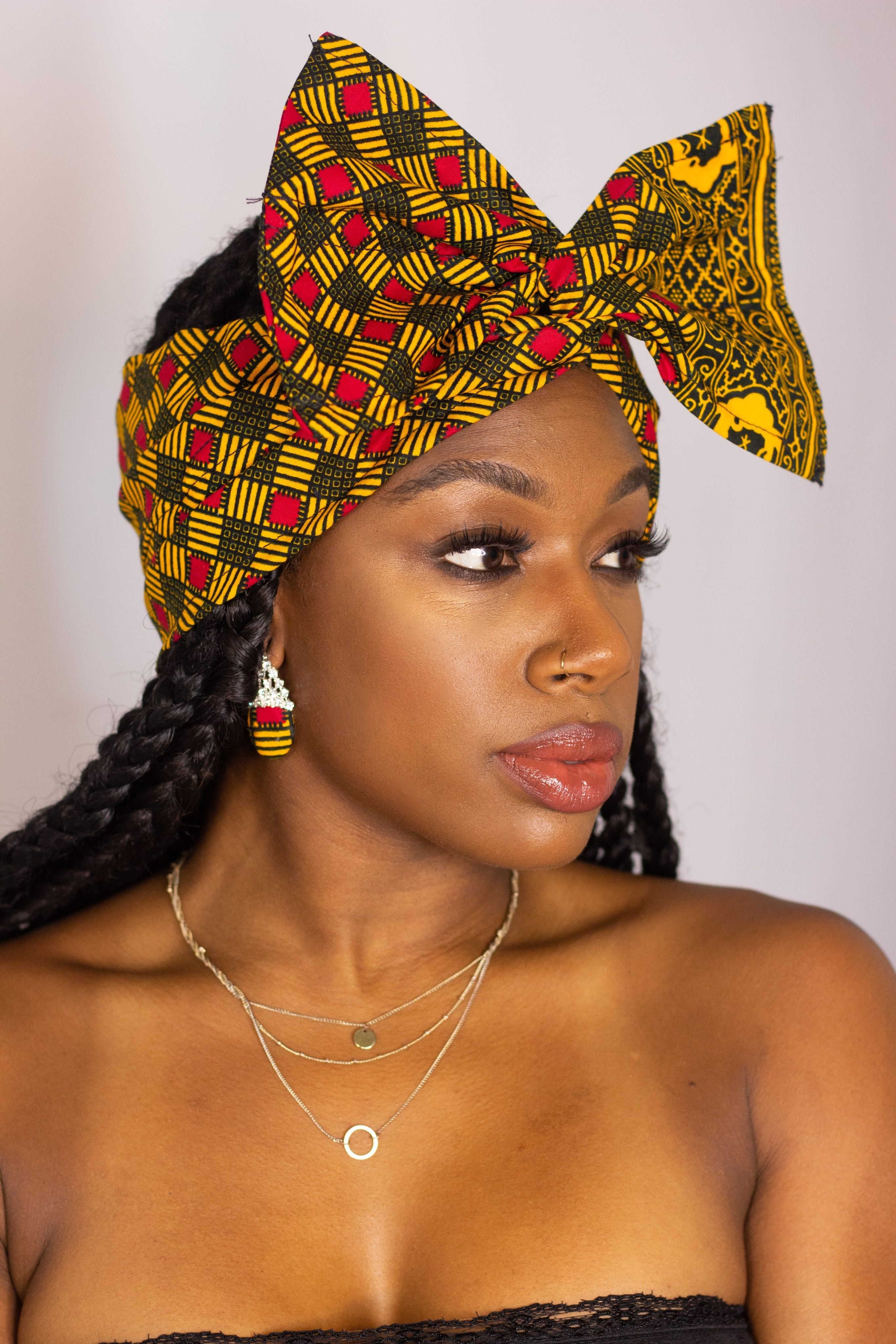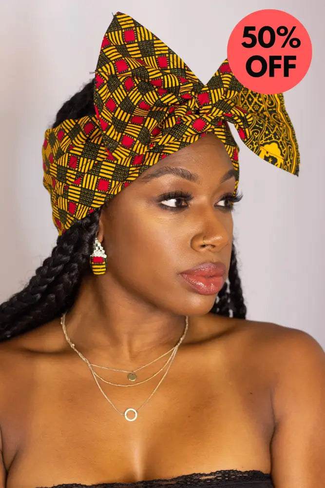 Our African headwraps are stylish, practical and keep hair tidy all day long. They are easy to wear and versatile adding a new dimension to your everyday wardrobe. As African fabrics are colourful, headwraps made from them can enhance a rather simple dress. They are best worn with and complement matching African print garments. They are a must have for every woman due to the ease and glamour they provide.