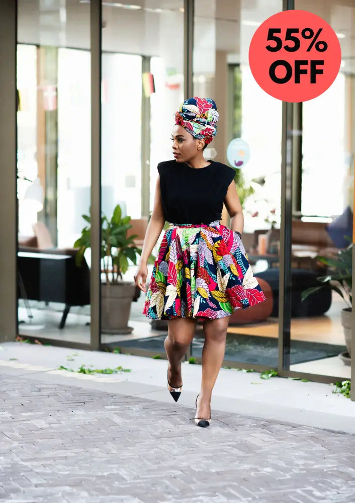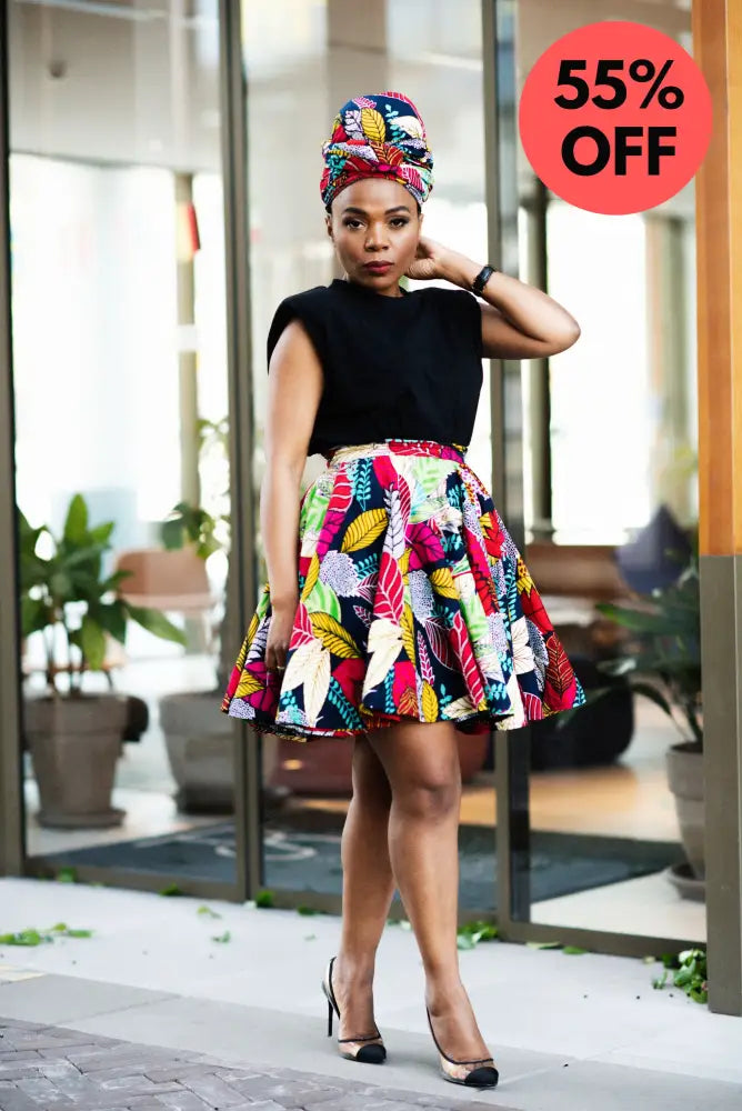 A very stunning multicolored flared mini skirt with pockets is a pretty piece that will give you that sparkle either at a workplace or at a wedding or anywhere else! Match it with a blouse or shirt to give that look and feel of sophistication.