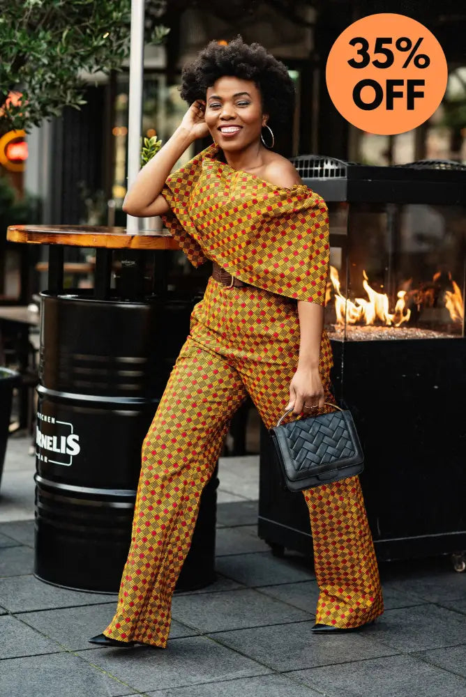 This off-shoulder jumpsuit is indeed a stunner and chic, it is a gorgeous jumpsuit and ideal for warm summer nights as they are made from breathable cotton, and its off-shoulder design allows you to enjoy every little breeze. They can also be worn comfortably in the wintertime too.