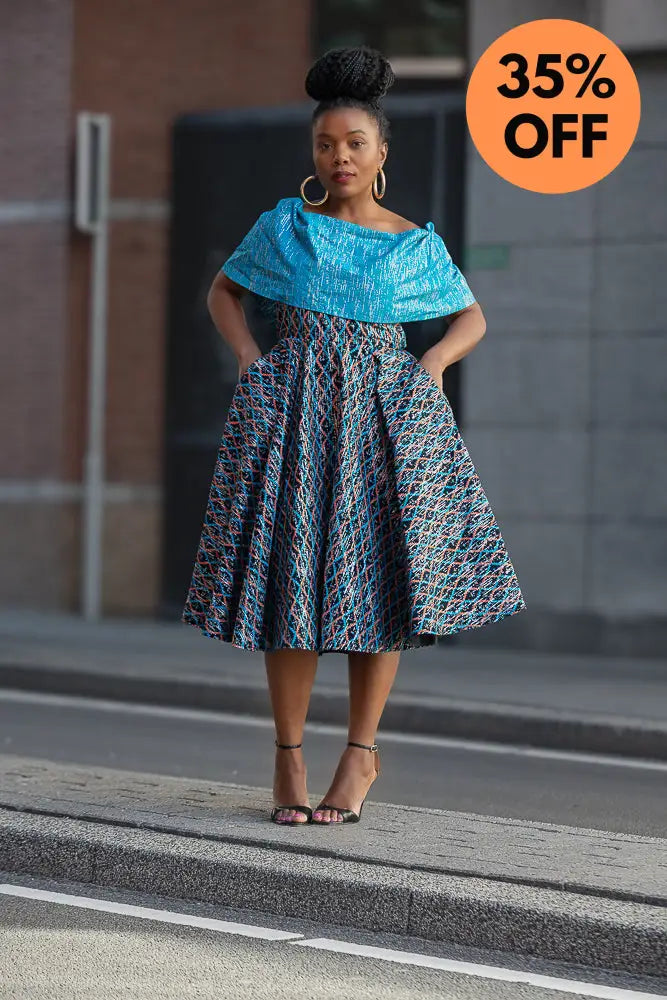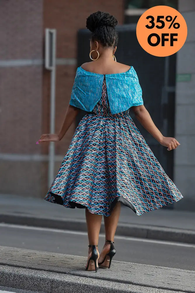 If opulence was a dress, it would be the Oyin African Dress. This dress is made of high quality and soft fabric, very comfortable to wear. Cape sleeve off-shoulder dress, elegant and beautiful. This cape sleeves off-shoulder dress with an elegant design is perfect for your wedding party, cocktail party, prom, evening, and more. Ohh and we can't forget the amazing print!