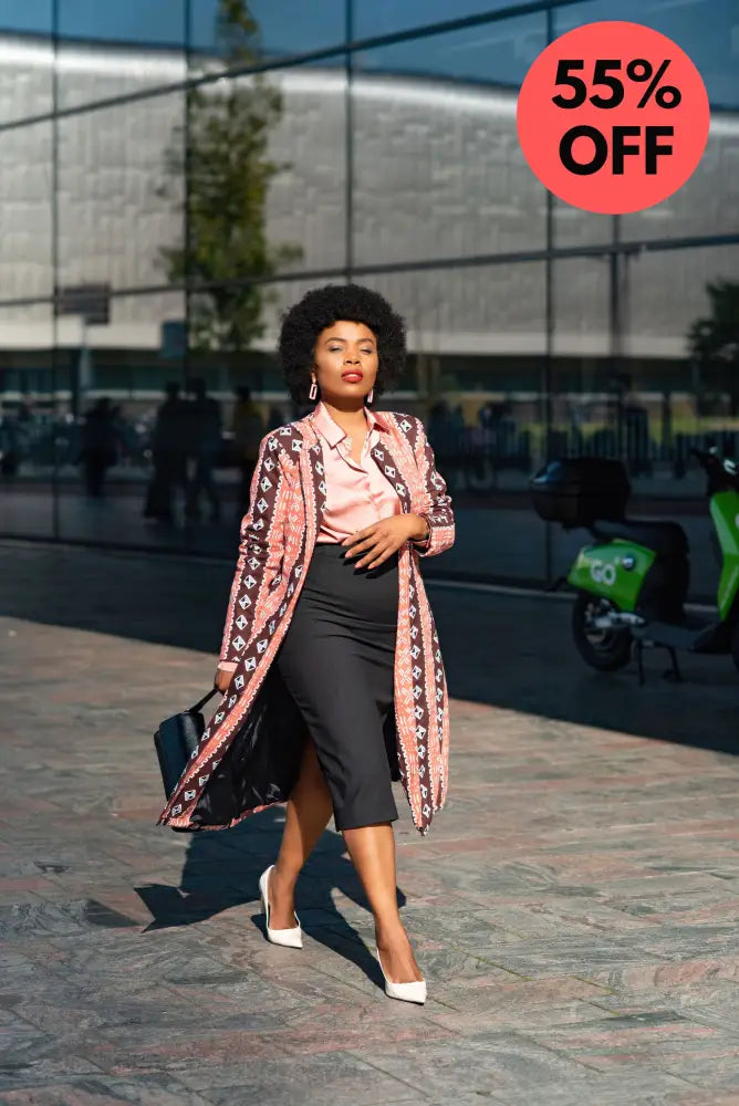 Power dressing is the new cool. Turn heads in this unique Oba Tribal Peach Jacket. You can choose to wear it with a dress, skirt or pants, and whatever your choice, this piece will always stand out!