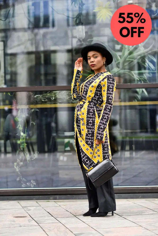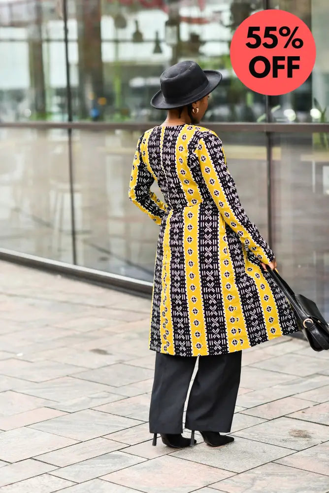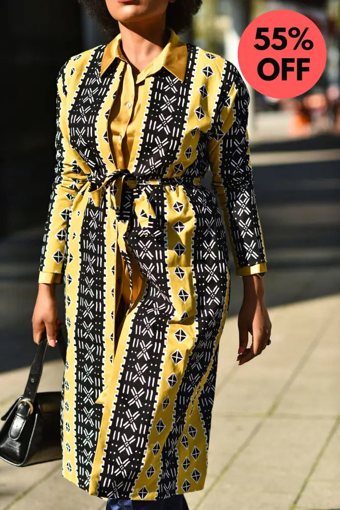 Be the talk of the town as you stride in the Oba Tribal Yellow Jacket. Glam it up with your favourite heels or boots and you are ready to hit the road. The jacket comes with a matching belt that will flawlessly accentuate your figure.