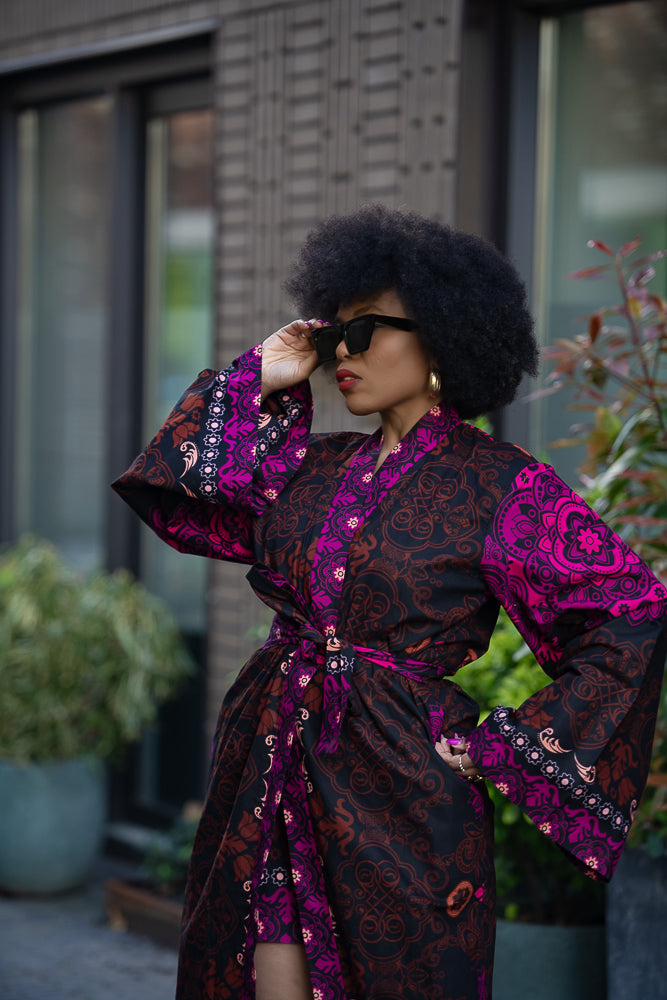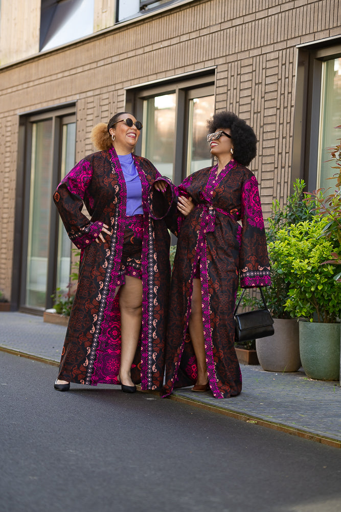 Drape yourself in pure elegance, hun. This kimono set print is *the* statement piece your wardrobe’s been begging for. Think flowing lines, vibrant patterns, and that perfect mix of chic and effortless. Whether you're layering it over jeans for brunch or pairing it with heels for date night, this kimono set is a total showstopper. Trust me, once you slip into this beauty, you won’t want to take it off—it’s that good. Go ahead, treat yourself—you deserve it.