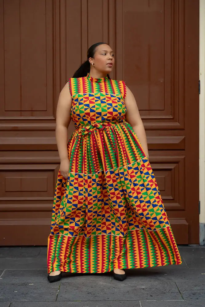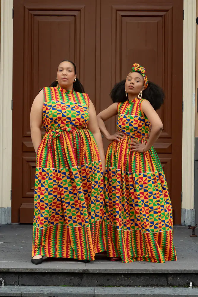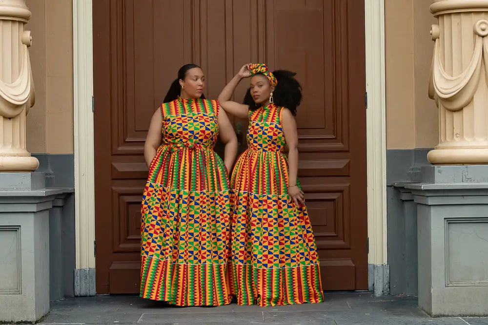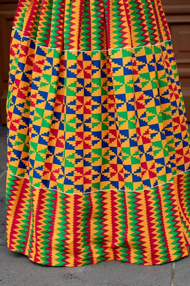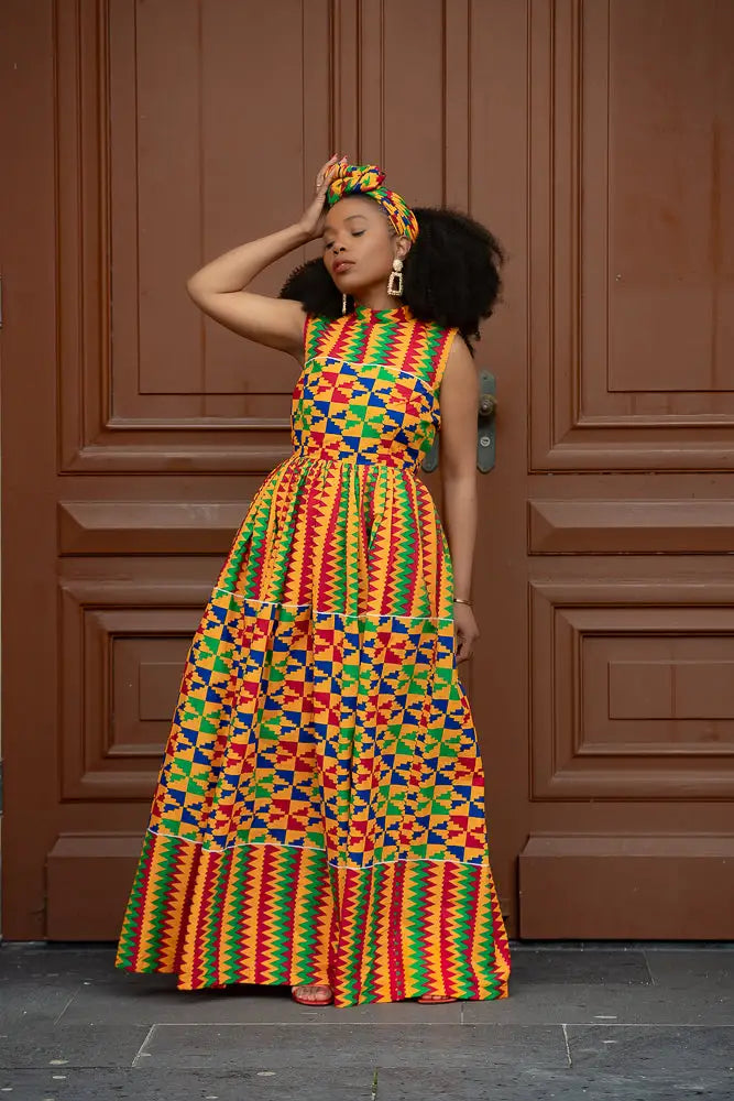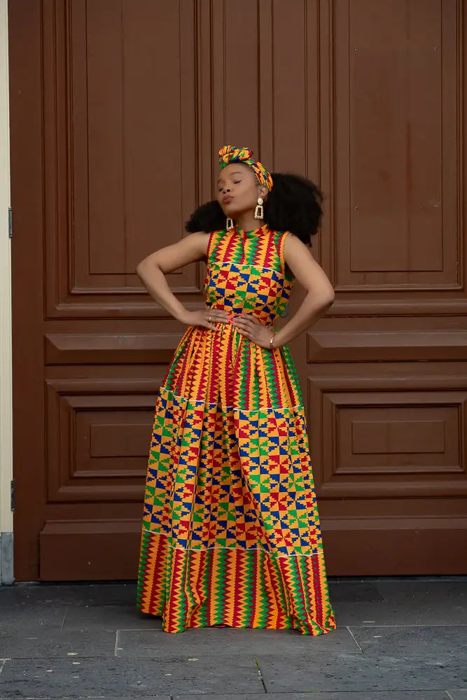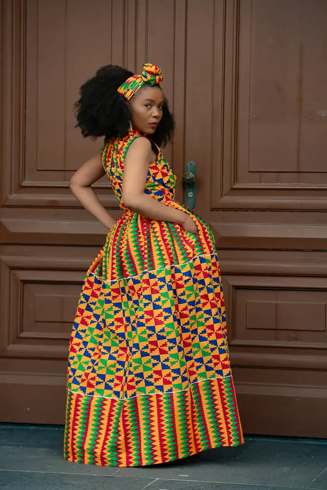 Like a goddess sprinkled with gold dust, this new kente fabric will have you spinning in magic like a princess. It’s too fabulous to hide away in the closet, honey. Show her off with pride, because she’s got all the colors you need when those theme party invites come knocking.