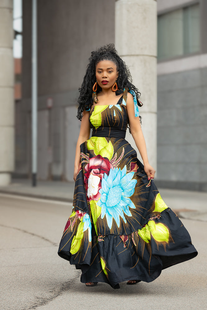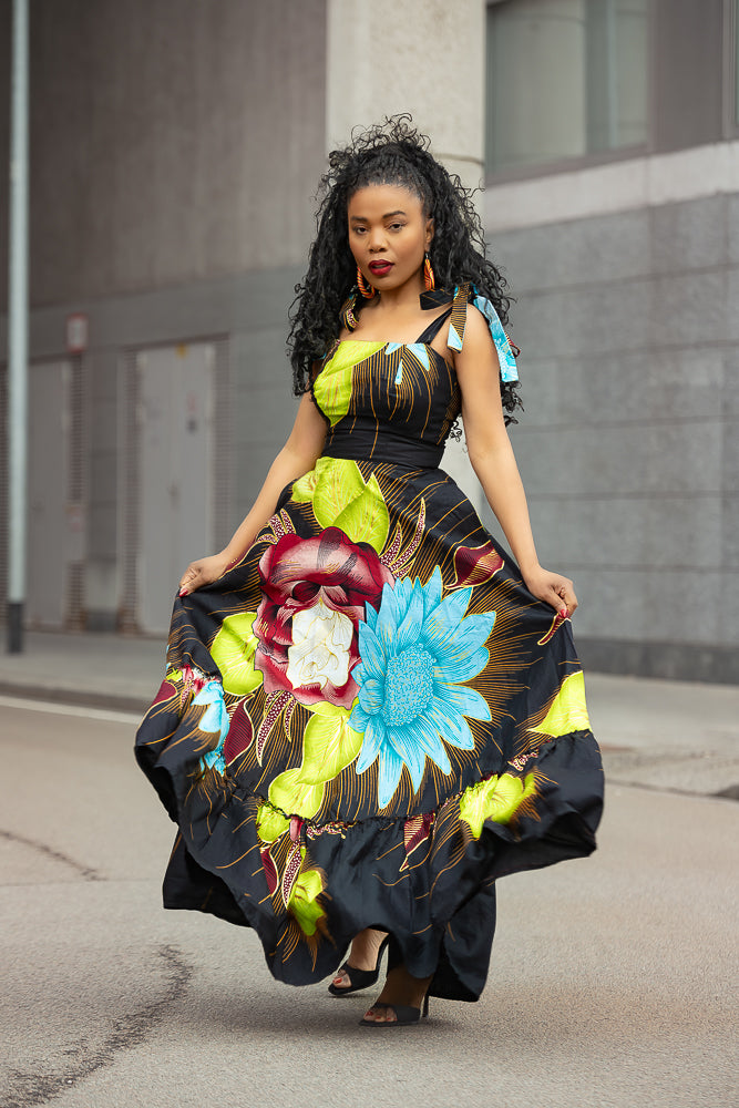 This dress is a whole mood. bright, bold, and blooming with joy. From the oversized florals to the playful shoulder ties that can be knotted into bows or left to dance in the wind, it’s giving carefree magic all the way. It’s got pockets (because joy lives in the little things) and a back zip that makes slipping into happiness a breeze. Made for sun-chasing, skipping pavements, and stealing compliments without even trying.
