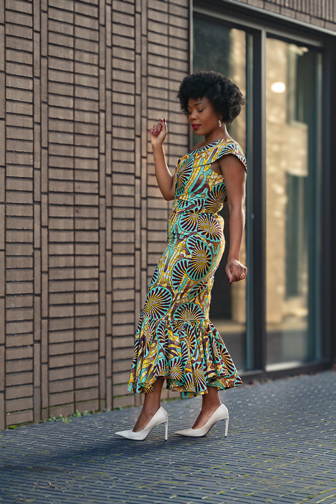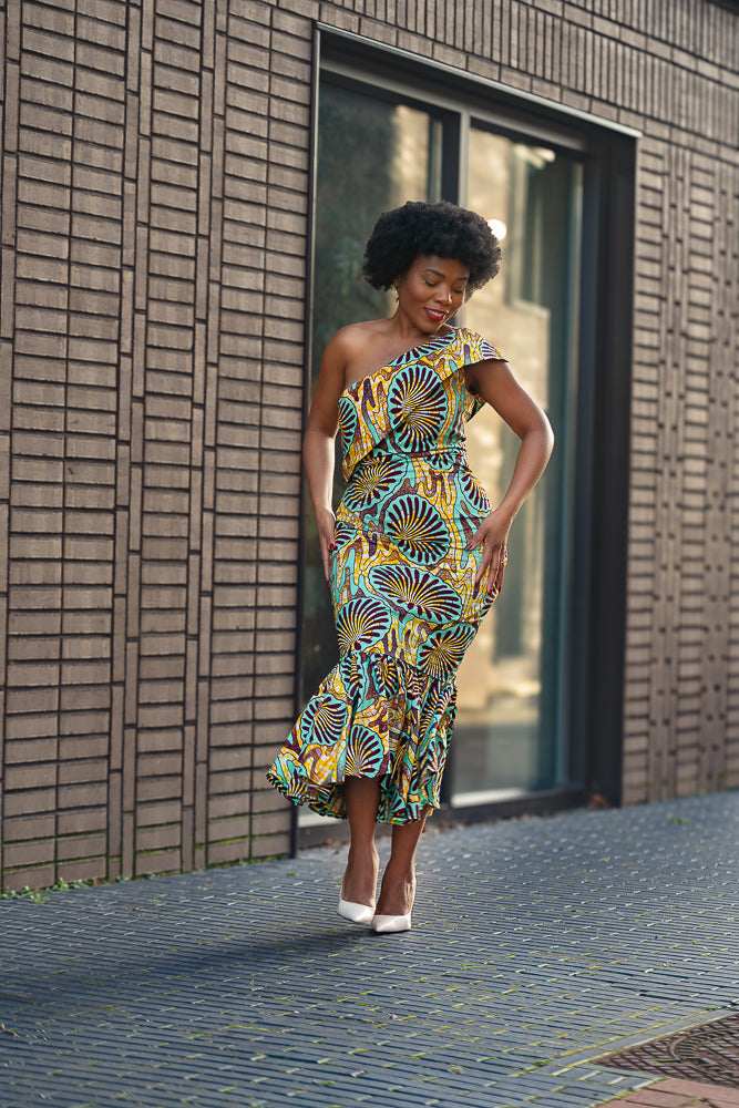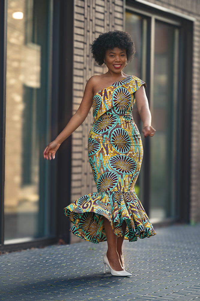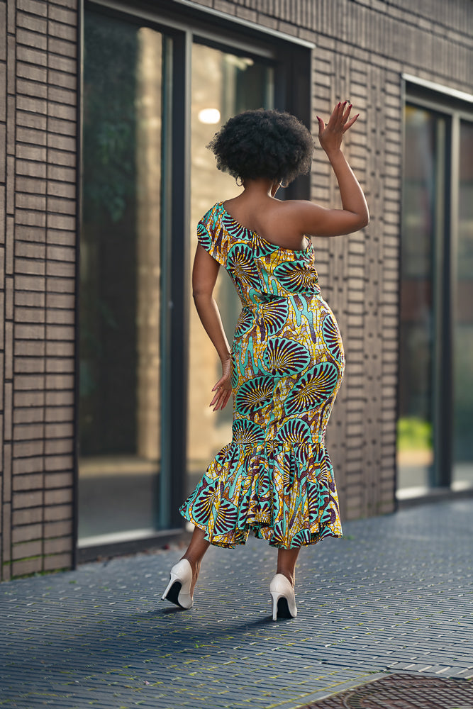 Make a statement in our stunning Ewa one shoulder mermaid hem dress. Made from a lightweight cotton blend, the Ewa dress features a one-shoulder design with a front flap and clinched waistline. Not only is this dress cool and breathable but it’s versatile too. You can dress it up or down by removing the zipped peplum as shown in the images. You can also dress it up with your favourite pair of heels or dress it down with a pair of summer sandals.