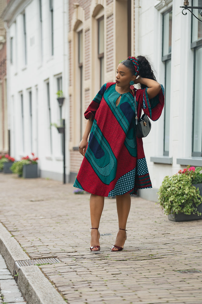 HAMZA GREEN AND RED PRINT DRESS