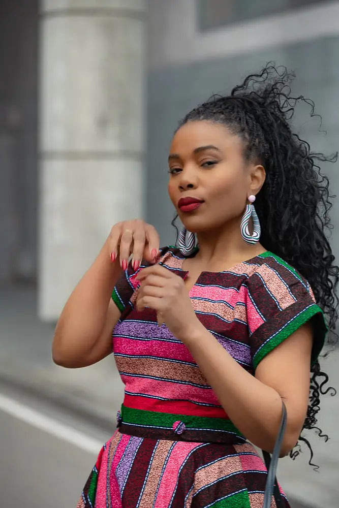 Our African printed earrings are your everyday statement piece, whether you're going full glam or just running errands. Crafted in 100% cotton and made to last, these are the kind of wraps you reach for again and again. Bold, proud, and oh-so-you.