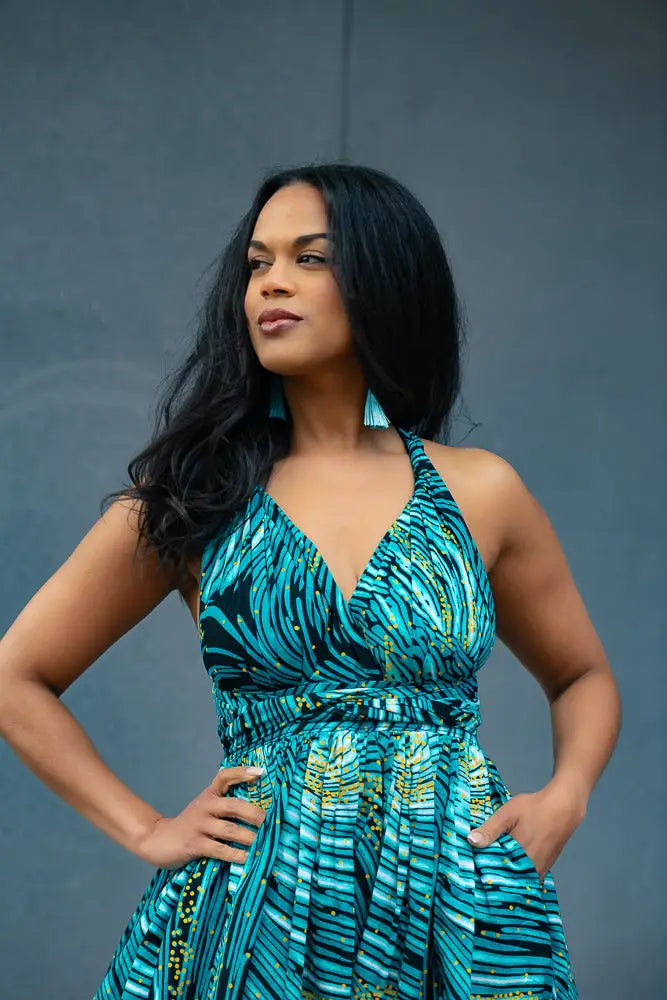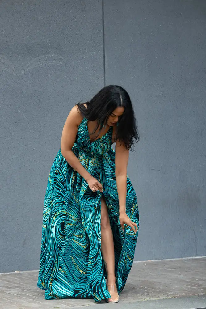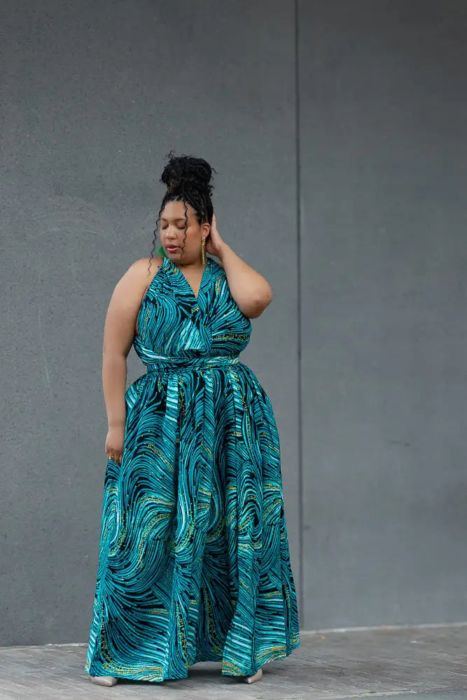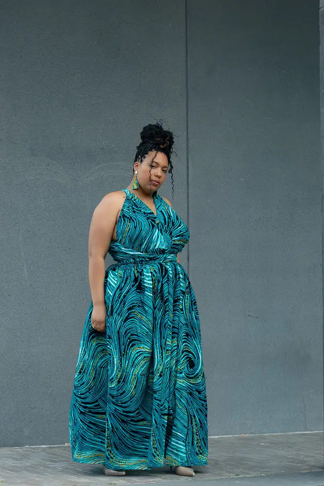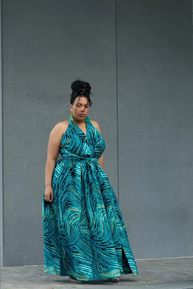 Bestie, this is the dress for summer. That “where did you get that?!” kind of energy. The ocean print Infinity dress is bold, breezy, and just plain beautiful. The colours? A dreamy swirl of turquoise and yellow that moves like magic every time you walk.
