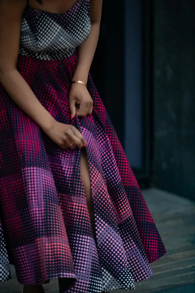 The queen is back! Our highly sought-after Lydia Dress, now back in stock in a new print due to popular demand! This dress is simply irresistible, and it's no wonder why it's our best-selling piece. Prepare to be mesmerized by its stunning beauty and undeniable charm. But here's the intriguing part: the Lydia Dress features a front invisible slit that allows you to adjust and control the amount of skin you want to show.