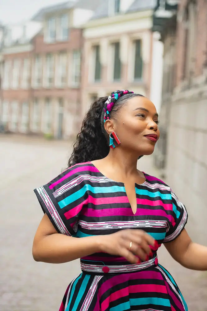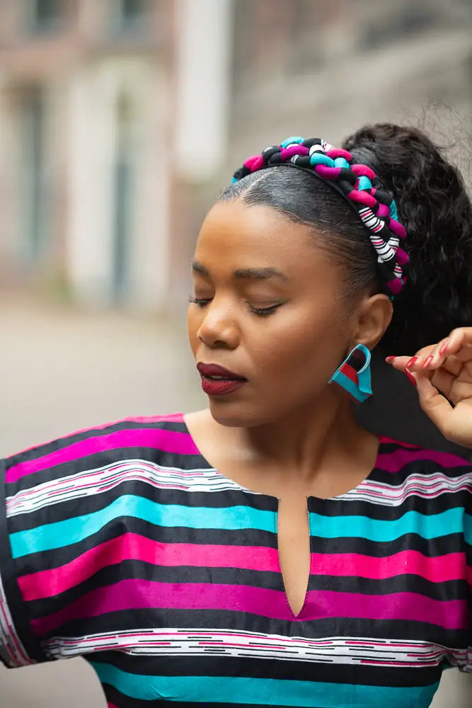 This isn’t just a headband, it’s a braided crown. Woven in deep navy, it wraps around the head like a halo of confidence. Bold, structured, and unapologetically regal.