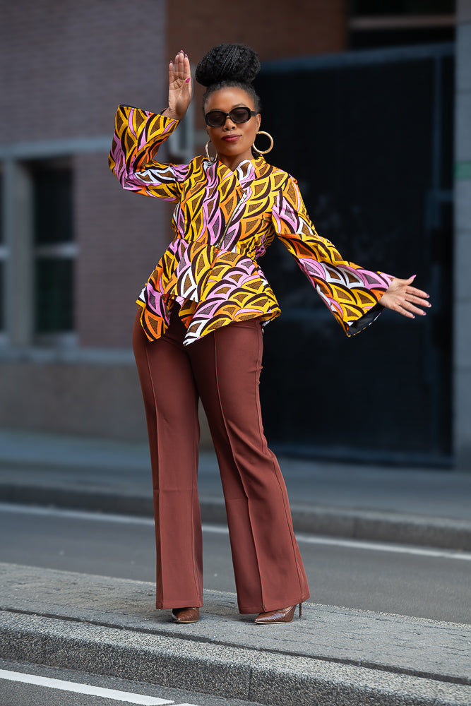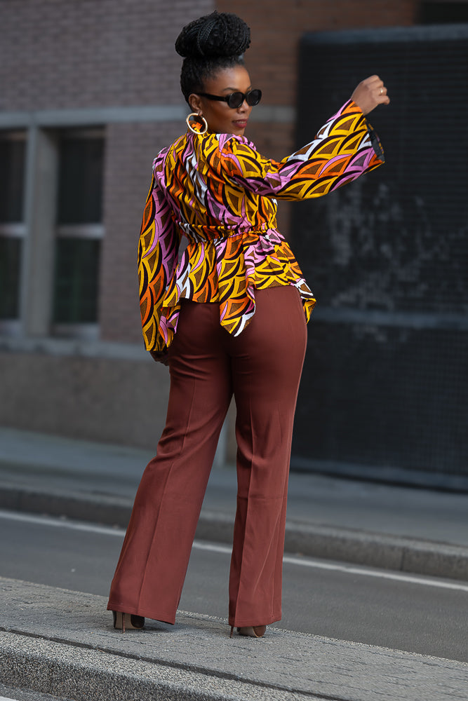 The Japanese-inspired neckline is just the beginning of the stunning details on this Amari peplum top with a twist. This season, we're serving something fresh and striking, perfect for a woman of your stature. Stand out effortlessly with this gorgeous combination of colours! Trust us, you’ll be the only one rocking this rare piece.