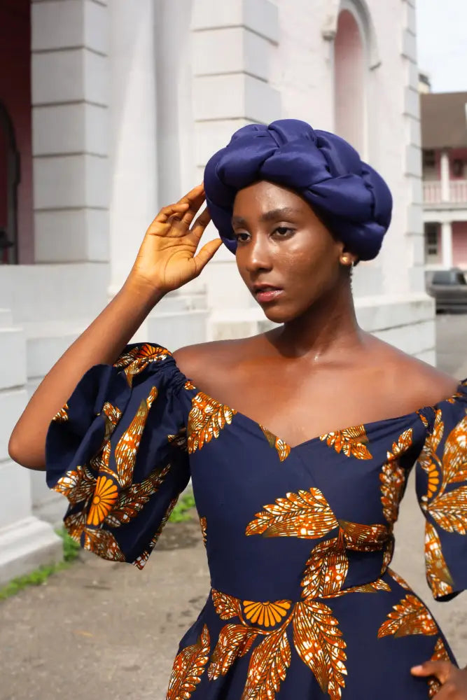 This isn’t just a headband, it’s a braided crown. Woven in deep navy, it wraps around the head like a halo of confidence. Bold, structured, and unapologetically regal.