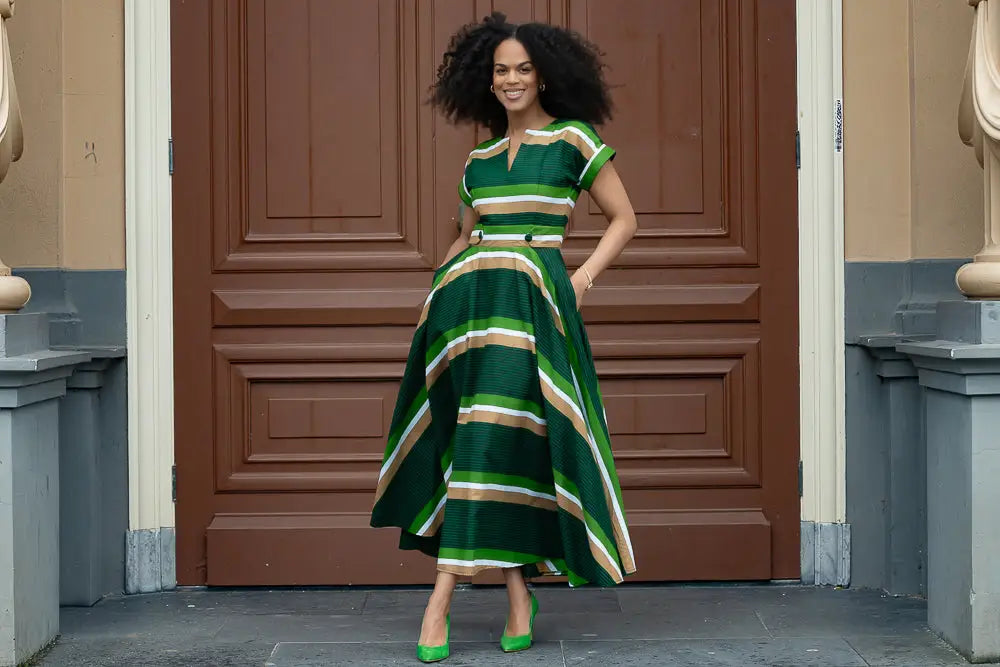Have you ever fallen head over heels and found yourself in a bit of a "uh-oh, I'm in trouble" situation? Well, that's the exact sentiment you might be experiencing right now as you lay your eyes on the this olive green Peju dress.