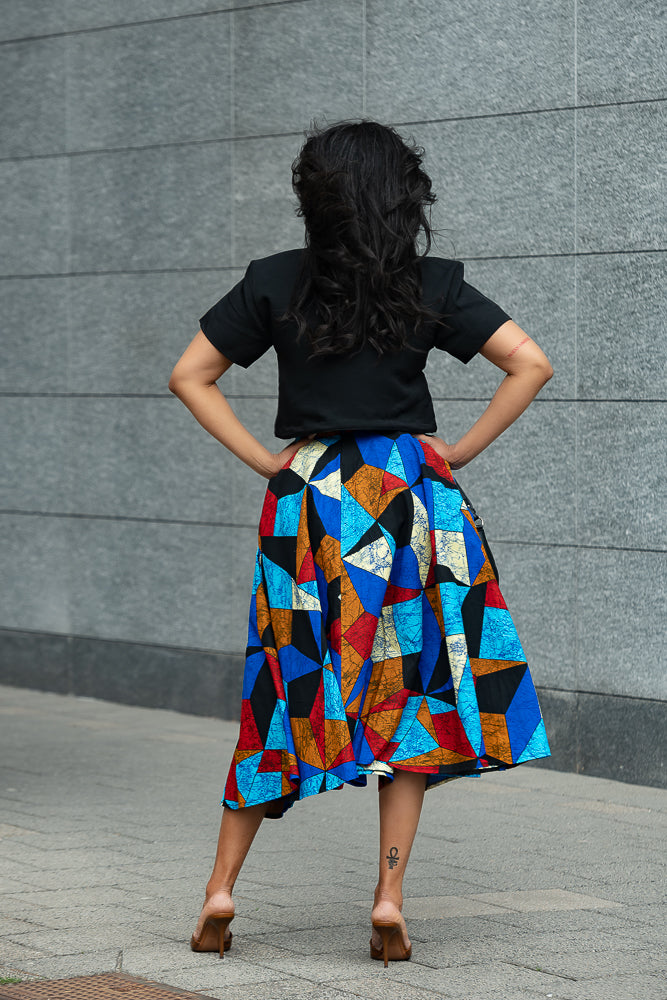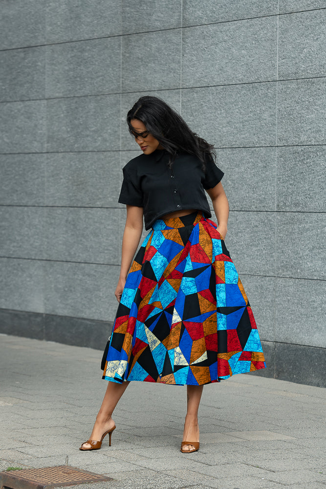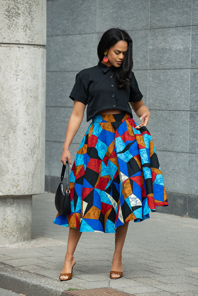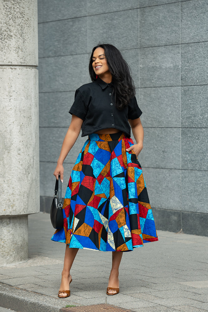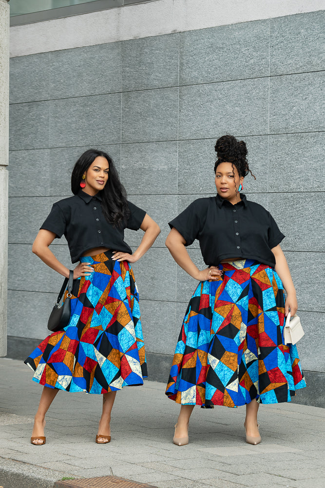 Gorgeous don't just walk in, show off! This Two-piece set skirt and black cropped shirt top with matching detailing will give you that head dropping gaze! It is a bright and beautiful fabric which is fit for any occasion.