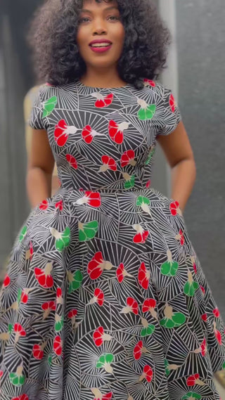 THANDIWE NAVY BLUE AND BROWN MIDI DRESS