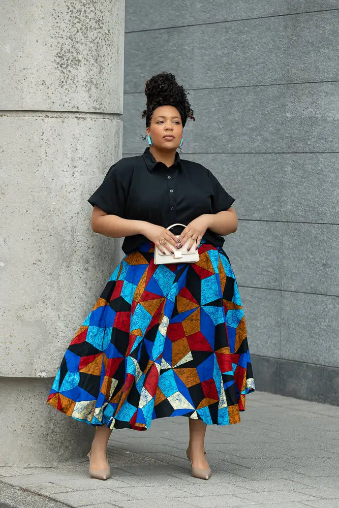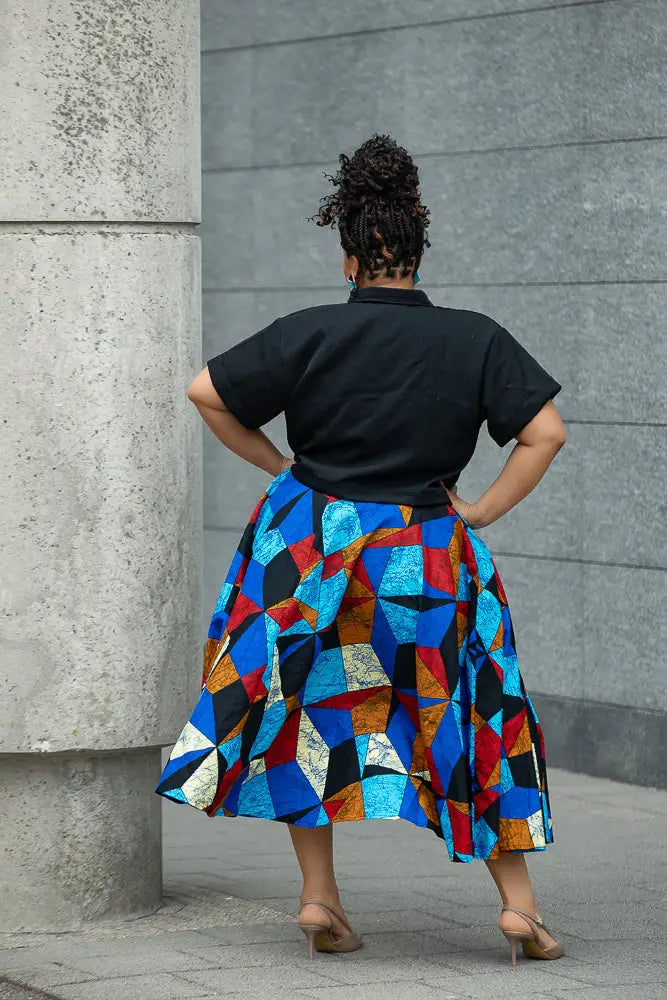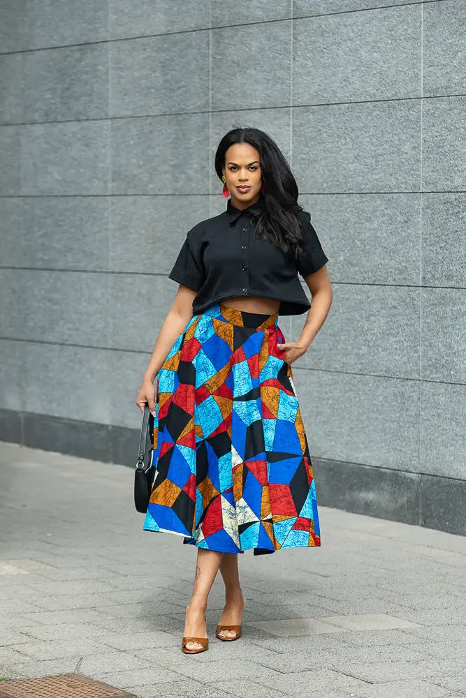 Gorgeous don't just walk in, show off! This Two-piece set skirt and black cropped shirt top with matching detailing will give you that head dropping gaze! It is a bright and beautiful fabric which is fit for any occasion.