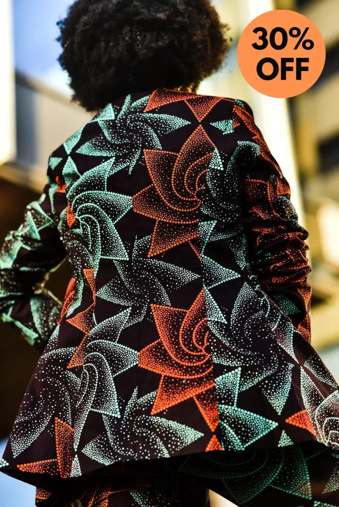 Whether you opt for full glam or soft glam, trust the Zora Jacket to complete your look. You can wear it with matching pants or mix and match with your favourite pencil skirt or formal pants. This one-of-a-kind print will certainly get you some attention while you enjoy the comfort and the flattering design of this stunner piece