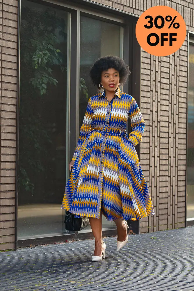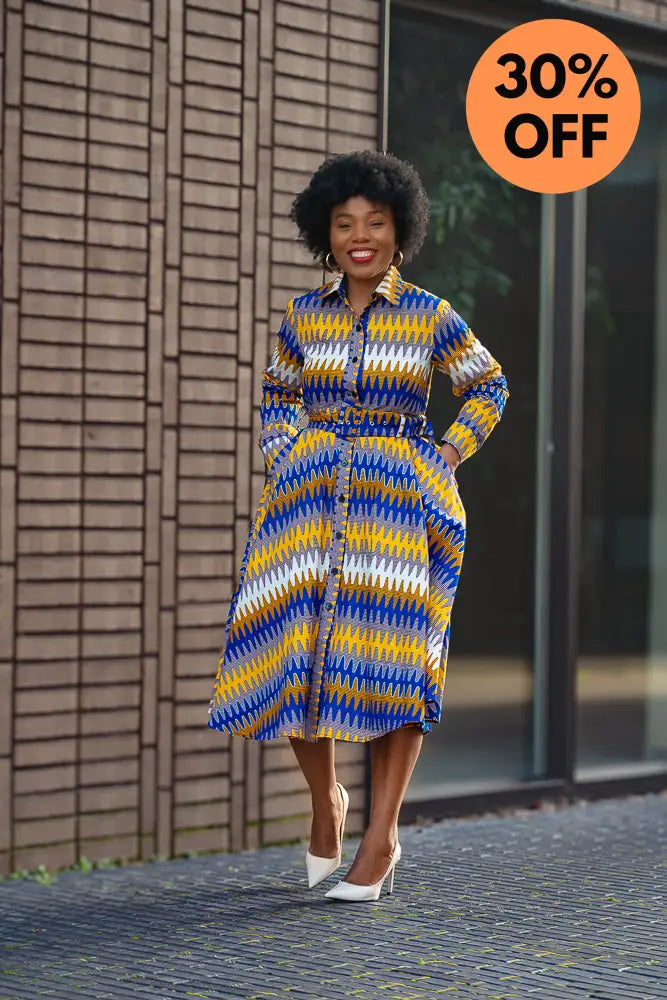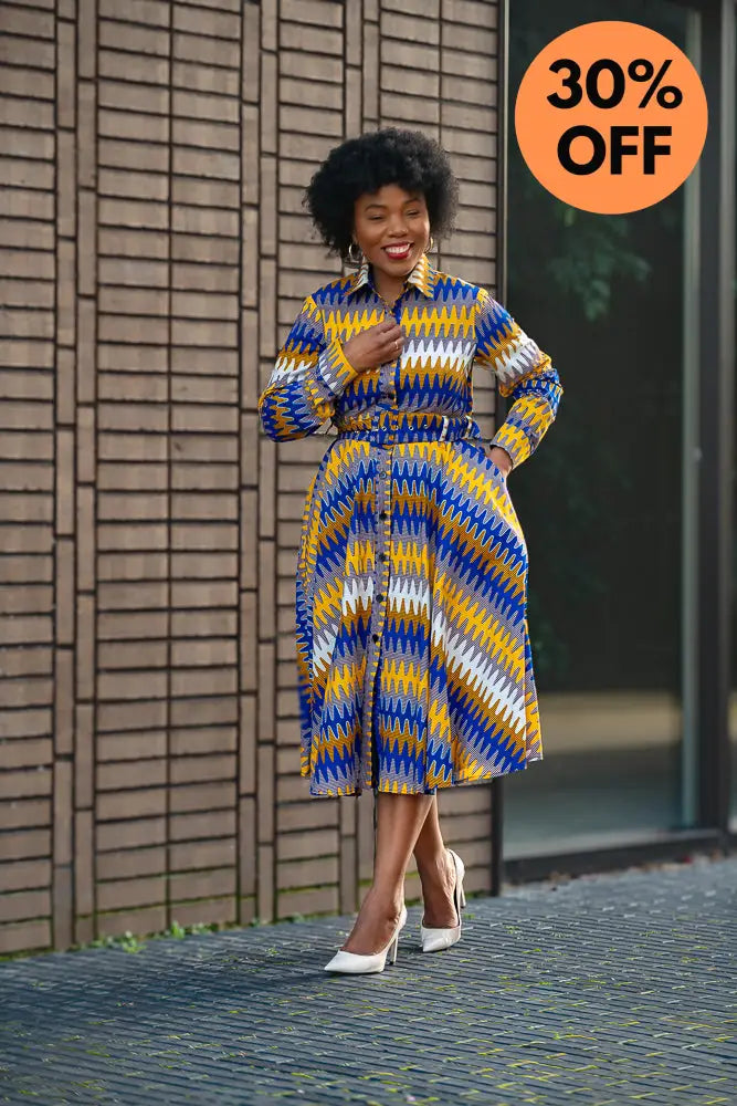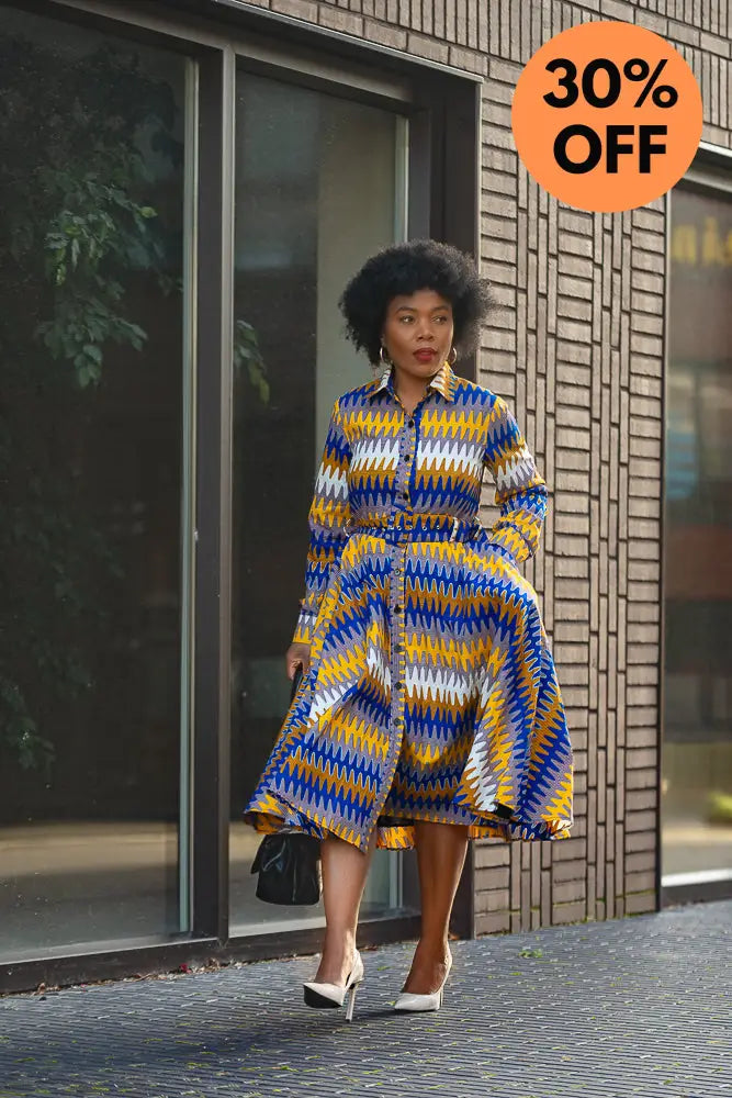The colour of this dress will not leave you unnoticed. The elegant print and design of the Julia midi dress with a belt that'll makes you feel sexy. The full skirt falls in a flattering A-line shape, has front buttons, two side seam pockets and an attachable belt to define the bust and waist.