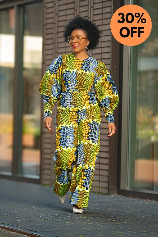 Get ready to bring the "wow" factor, queen! Inspired by the bold, electric 70s silhouette, this bold print is made to steal the spotlight. The search is over—this is *the* outfit you’ve been dreaming of. With long puff sleeves for that perfect balance of coverage and style, you’ll be twisting necks whether it's a cool evening out or a night to remember. But a word of caution: this outfit will own the room, so choose your moment wisely!