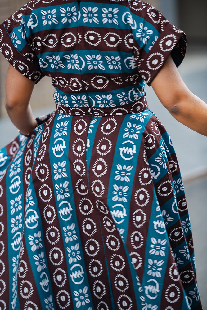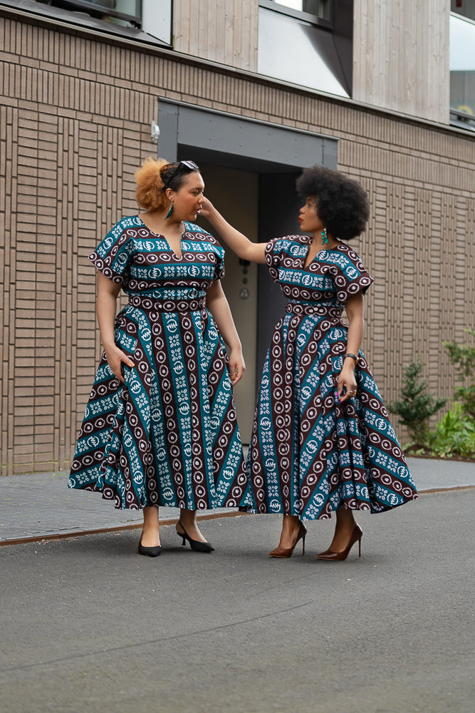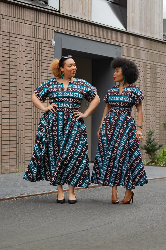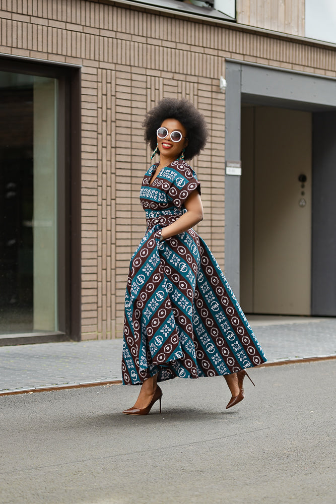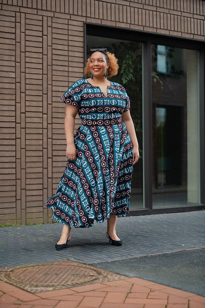 Have you ever fallen head over heels and found yourself in a bit of a "uh-oh, I'm in trouble" situation? Well, that's the exact sentiment you might be experiencing right now as you lay your eyes on the tribal blue Peju dress.