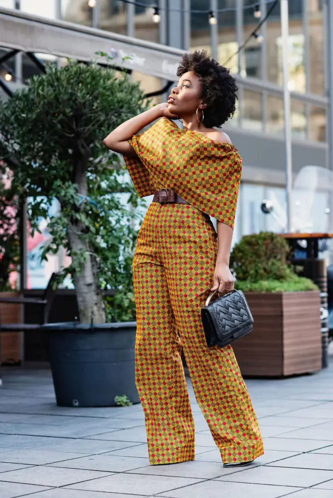 This off-shoulder jumpsuit is indeed a stunner and chic, it is a gorgeous jumpsuit and ideal for warm summer nights as they are made from breathable cotton, and its off-shoulder design allows you to enjoy every little breeze. They can also be worn comfortably in the wintertime too.