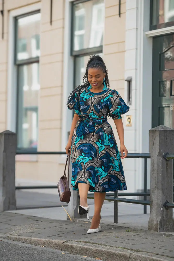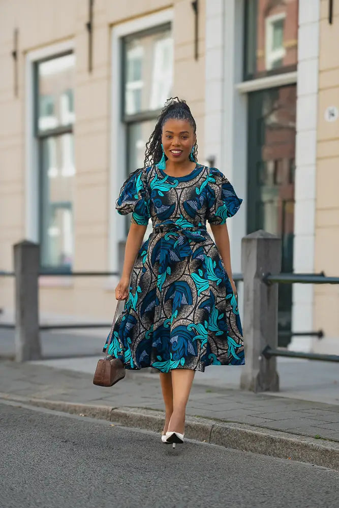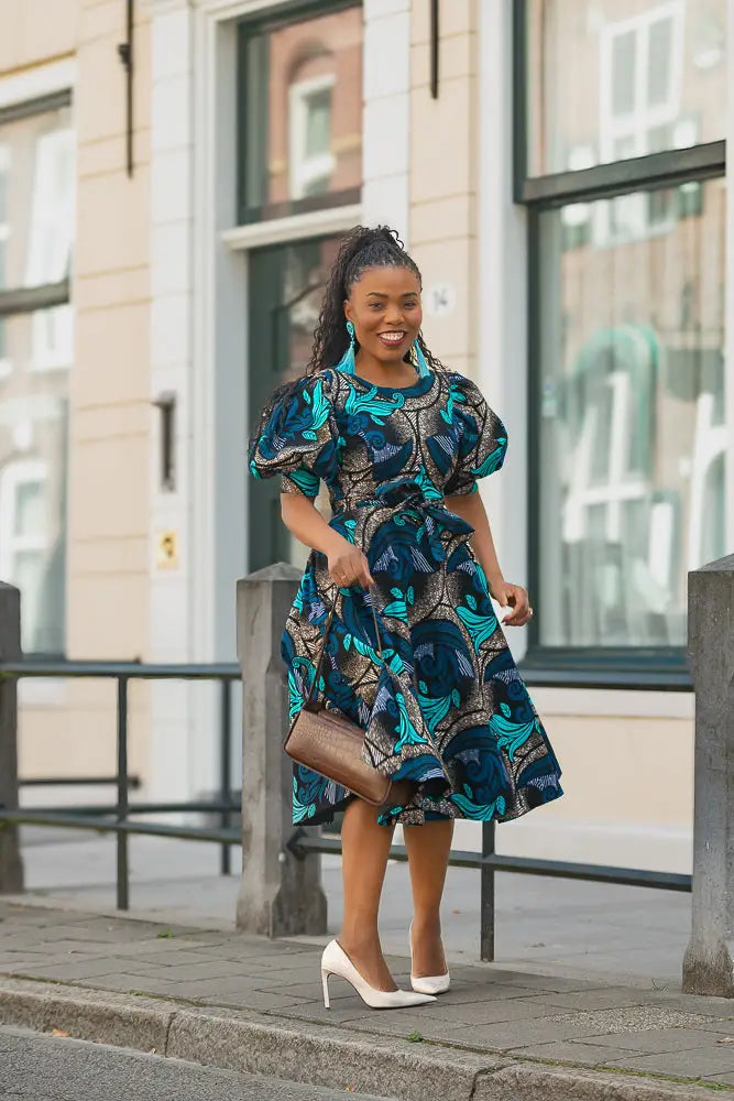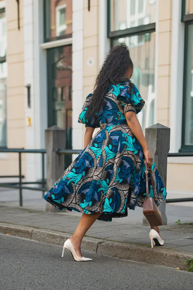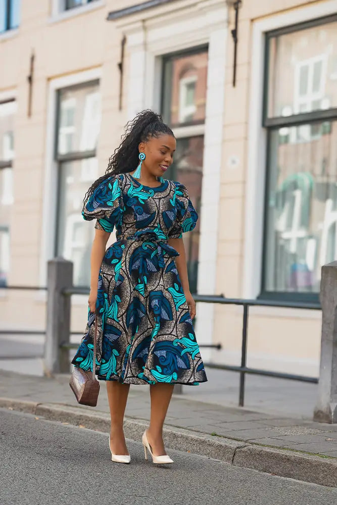 Get flirty this season with Nefertiti , giving you just the right amount of skin exposure. The elbow-length sleeves add a touch of elegance and provide coverage for a modest look. The dress falls gracefully to the midi length, making it perfect for both formal and casual events. Whether you're dressing up for an evening event or dressing down for a cocktail party with girlfriends, be sure to get some complimentary stares with this dress.