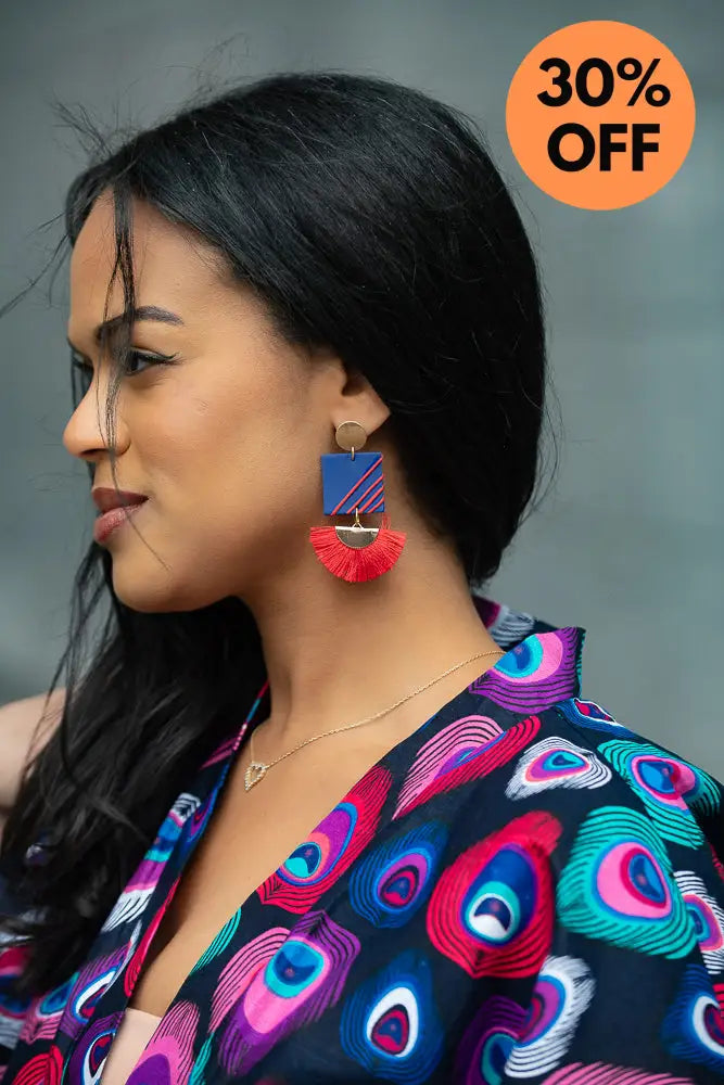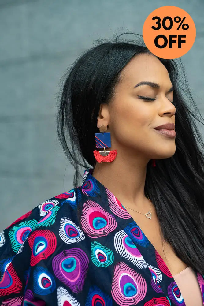 Our African printed earrings are your everyday statement piece, whether you're going full glam or just running errands. Crafted in 100% cotton and made to last, these are the kind of wraps you reach for again and again. Bold, proud, and oh-so-you.