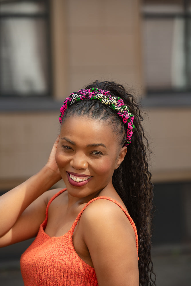 This isn’t just a headband, it’s a braided crown. Woven in deep navy, it wraps around the head like a halo of confidence. Bold, structured, and unapologetically regal.