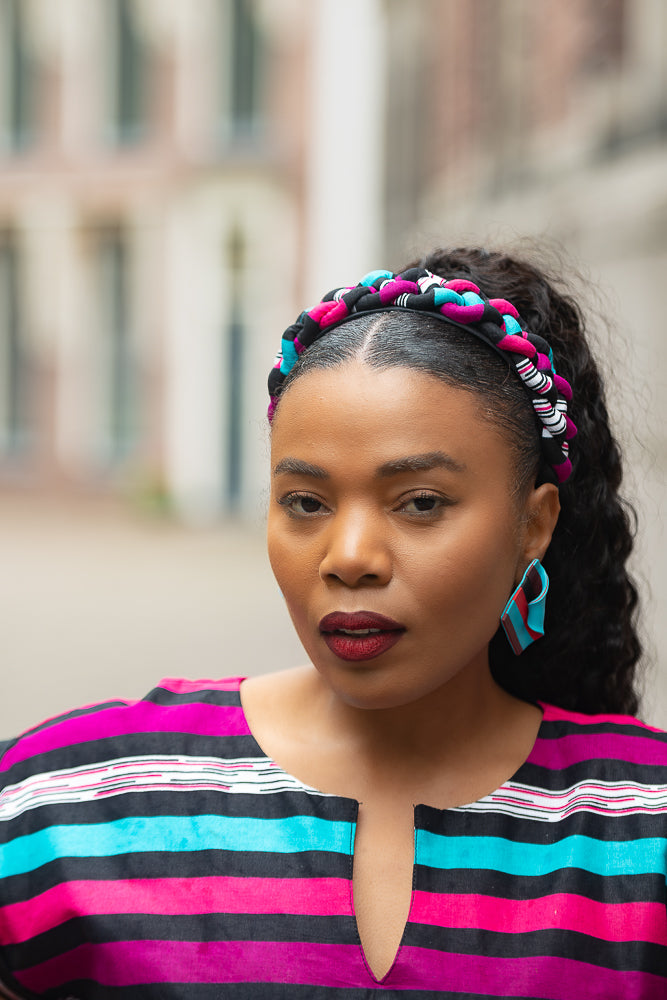 This isn’t just a headband, it’s a braided crown. Woven in deep navy, it wraps around the head like a halo of confidence. Bold, structured, and unapologetically regal.