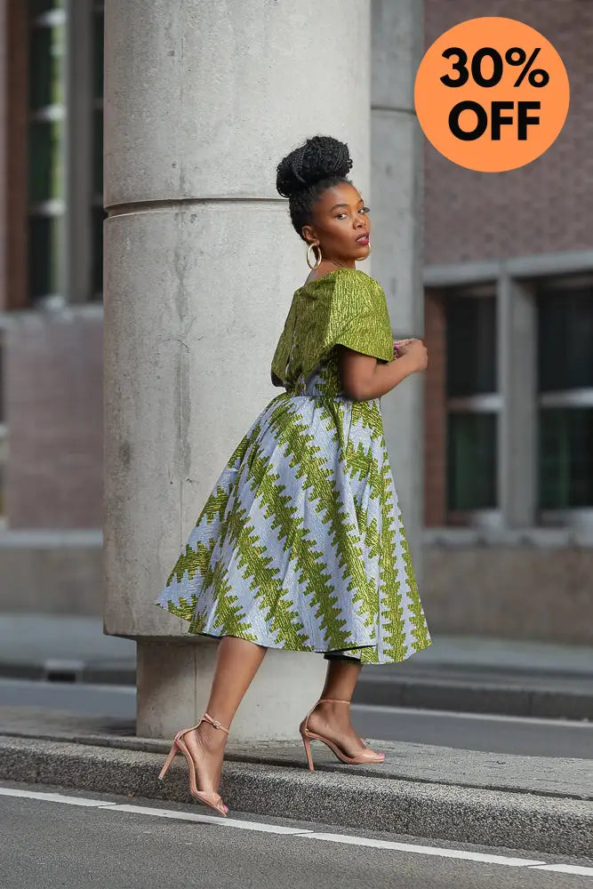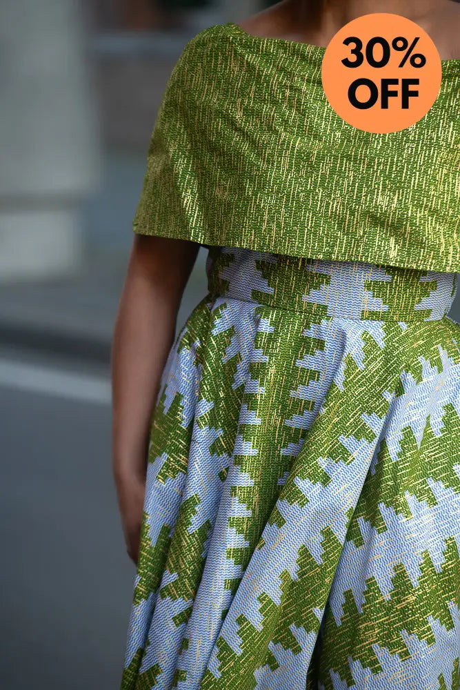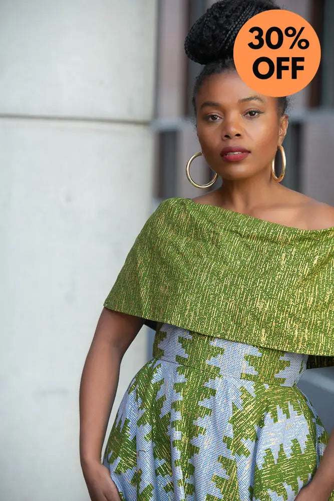 If opulence was a dress, it would be the Oyin African Dress. This dress is made of high quality fabric, very comfortable to wear. Cape sleeve off-shoulder dress, elegant and beautiful. This cape sleeves off-shoulder dress with an elegant design is perfect for your wedding party, cocktail party, prom, evening, and more. Ohh and we can't forget the amazing print!