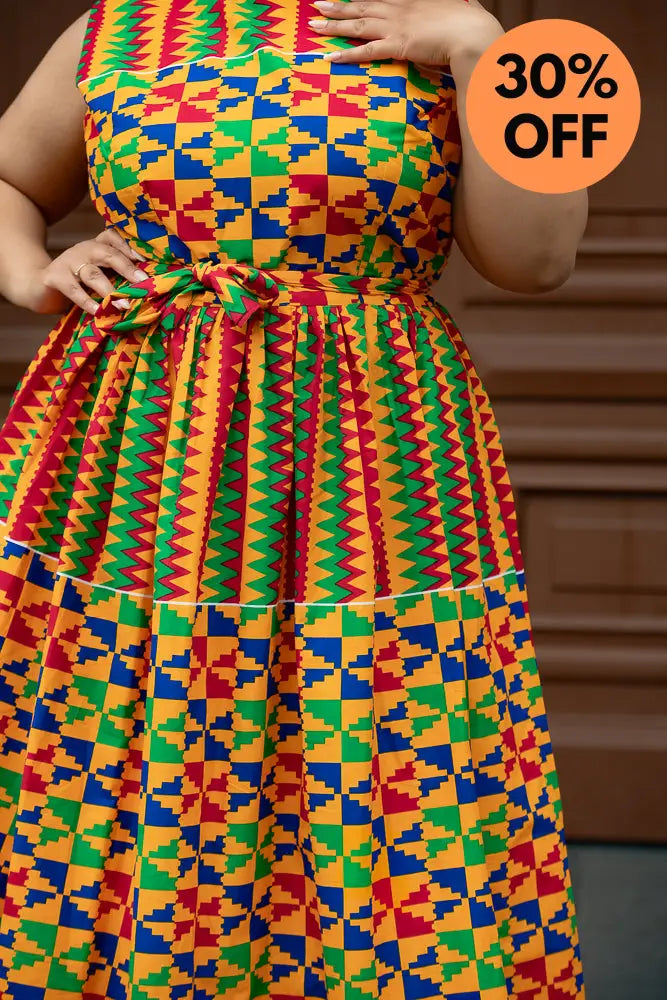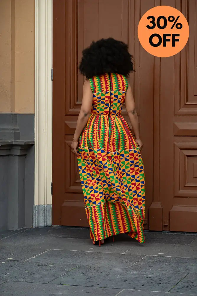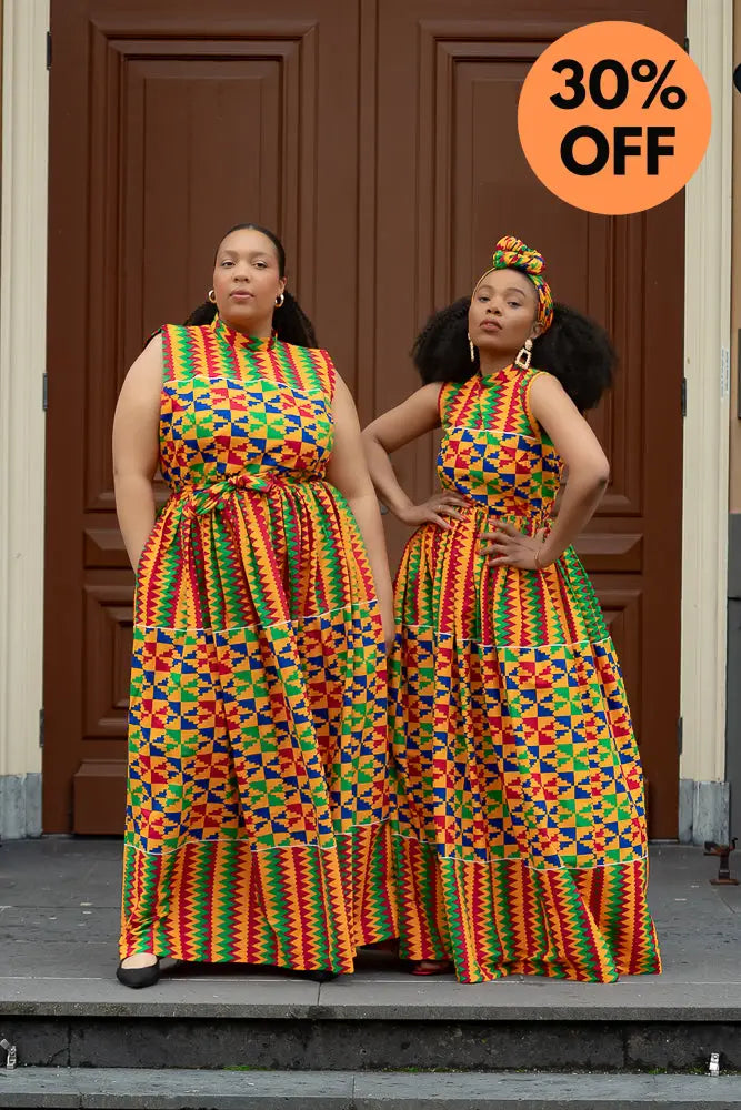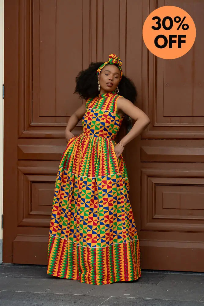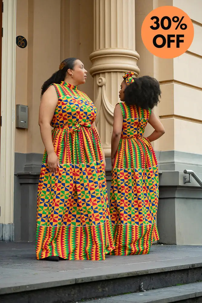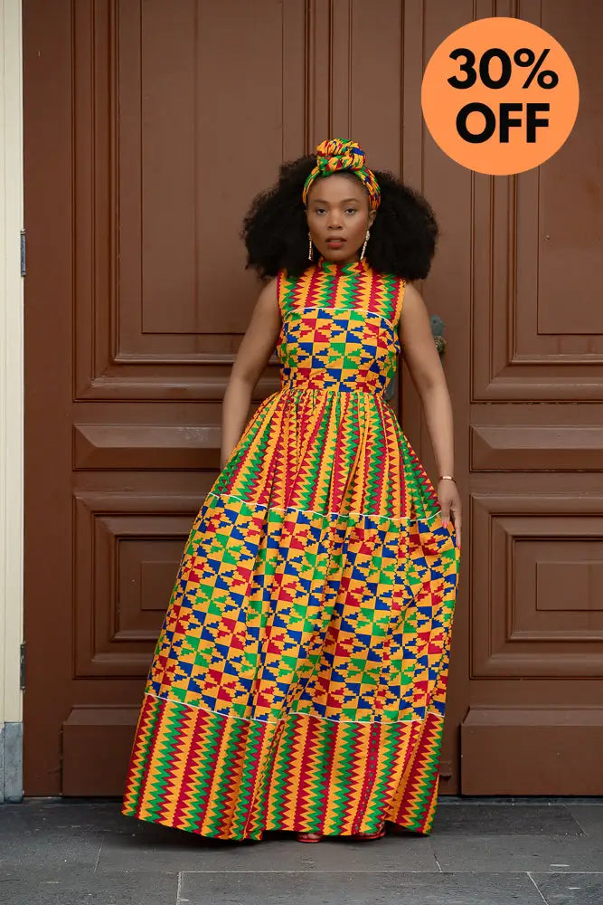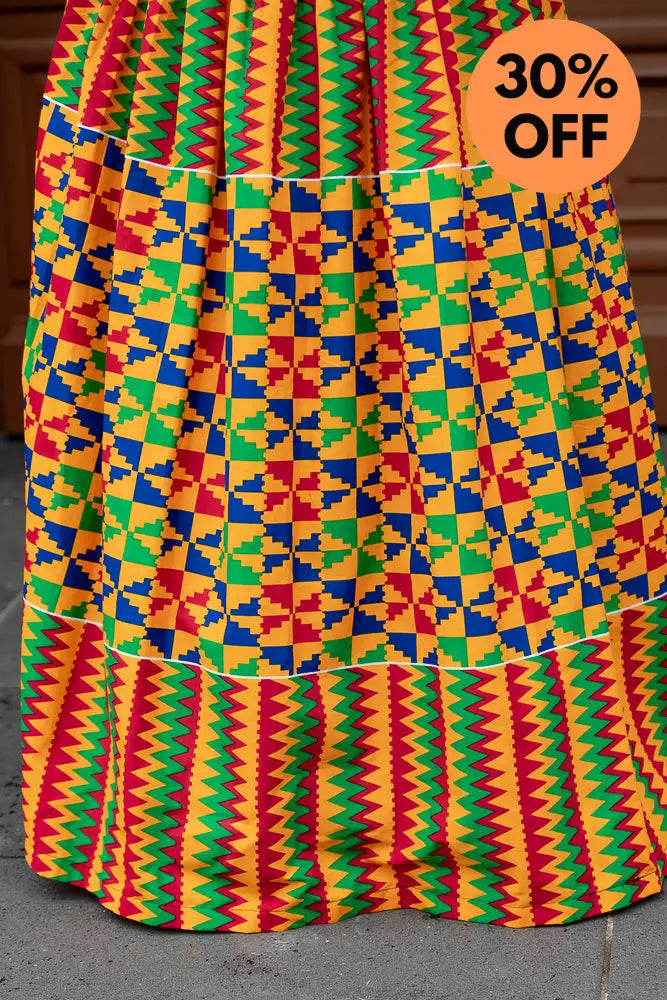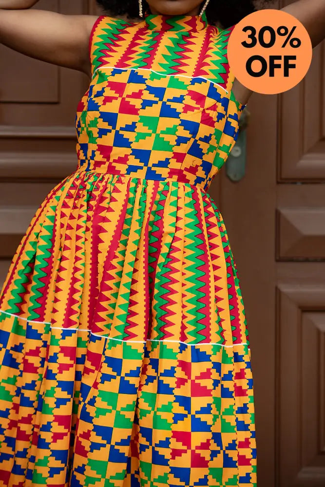 Like a goddess sprinkled with gold dust, this new kente fabric will have you spinning in magic like a princess. It’s too fabulous to hide away in the closet, honey. Show her off with pride, because she’s got all the colors you need when those theme party invites come knocking.