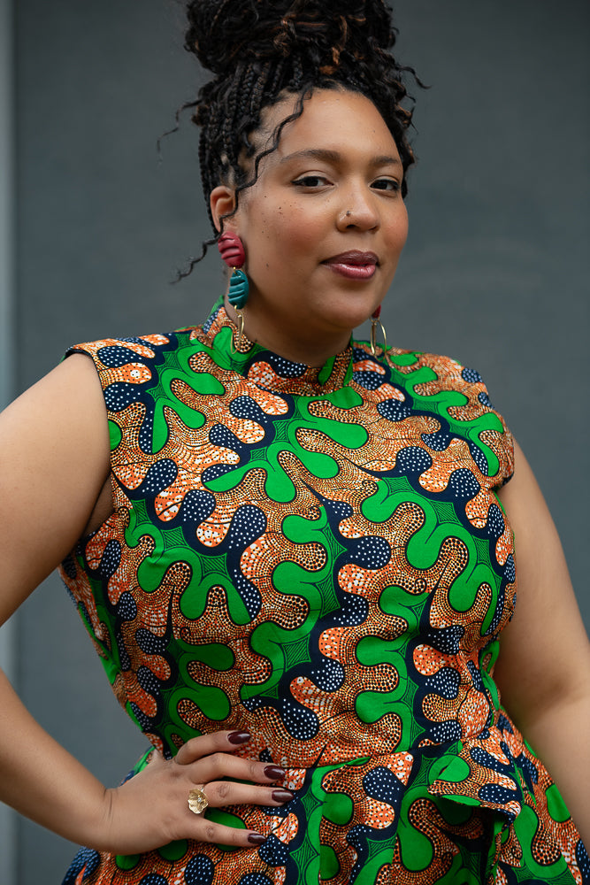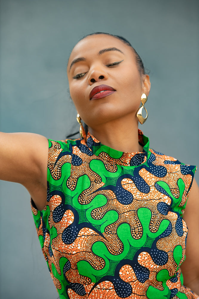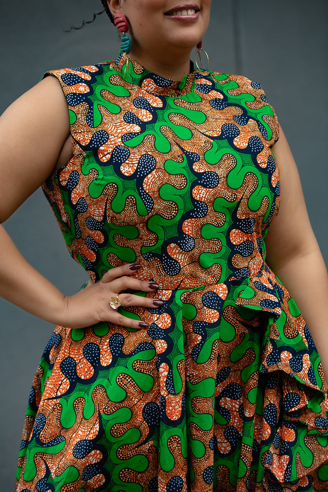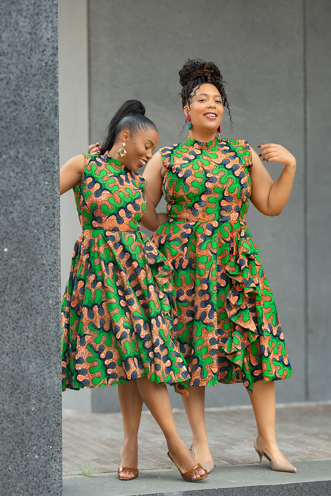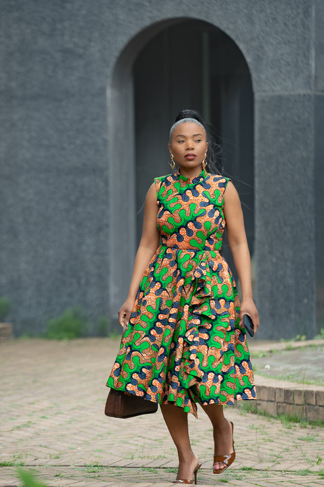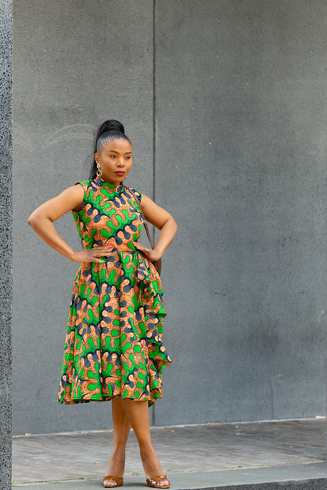 A sleeveless, high-neck beauty that flatters without trying too hard, with a soft, wavy overlay that moves like a ripple in still water. It’s the detail that catches the light and the compliments. The coral reef-inspired print adds that gentle pop of green, earthy and lush, like summer on your skin.