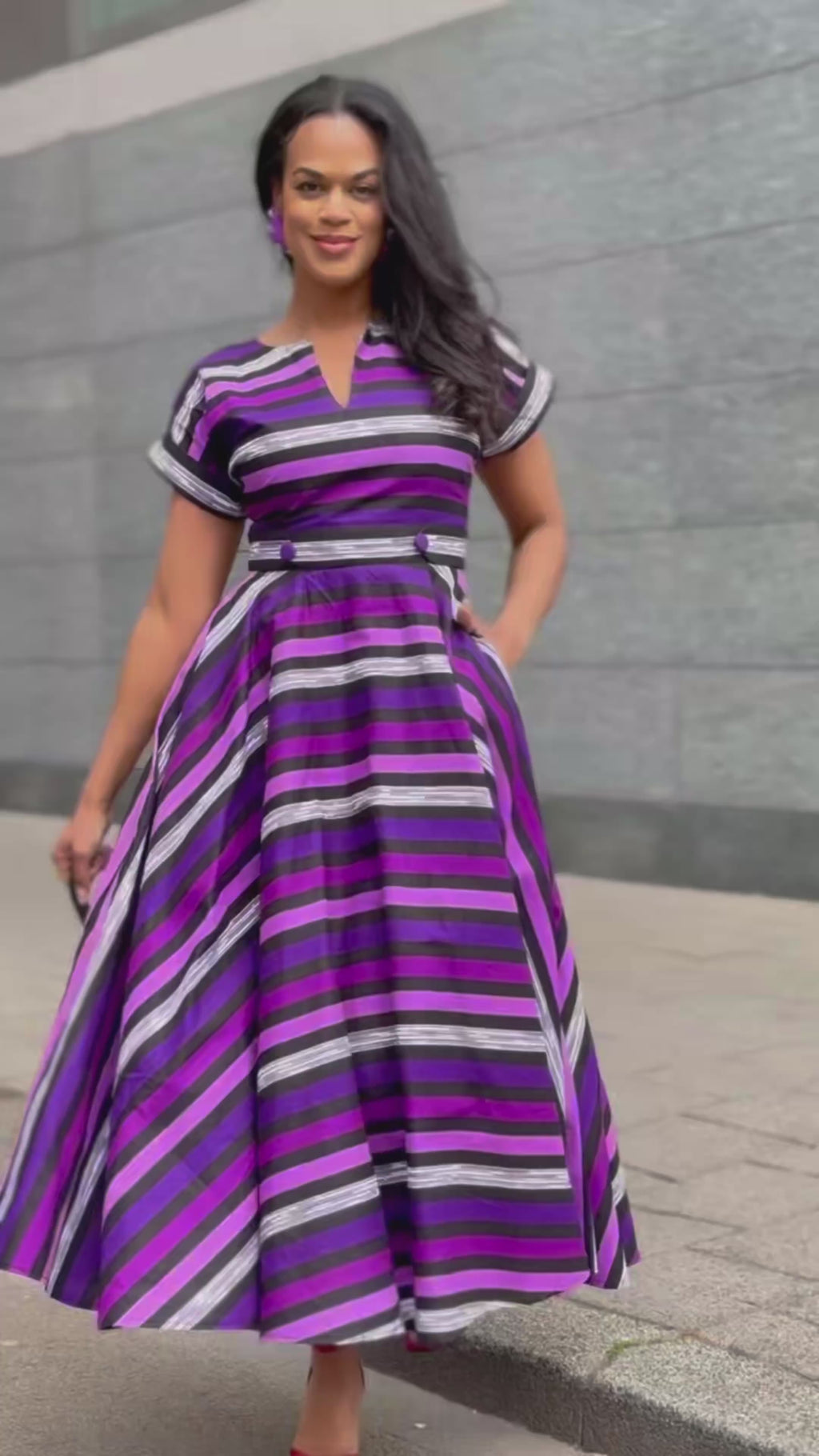 Have you ever fallen head over heels and found yourself in a bit of a "uh-oh, I'm in trouble" situation? Well, that's the exact sentiment you might be experiencing right now as you lay your eyes on the pink and green striped Peju dress.