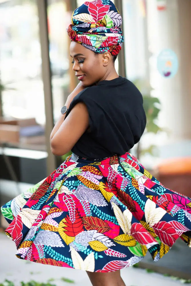 A very stunning multicolored flared mini skirt with pockets is a pretty piece that will give you that sparkle either at a workplace or at a wedding or anywhere else! Match it with a blouse or shirt to give that look and feel of sophistication.