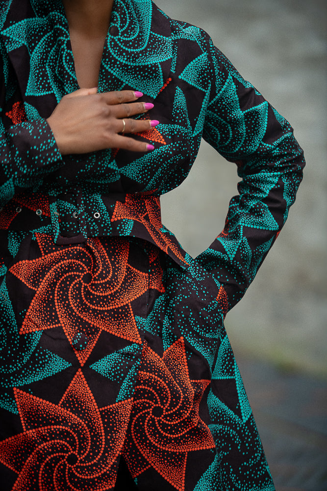 The Zola duster jacket is the perfect partner to high boots and chunky Heritage Clothing’s accessories for a memorable look that works for a special event or night out with the girls. Long sleeve, open front blazer. Fashion colourful print design and very flattering for all body types. Suitable for all occasions, for work, party and daily life.