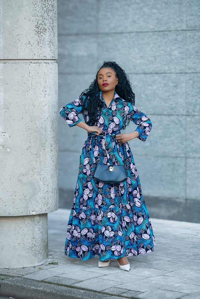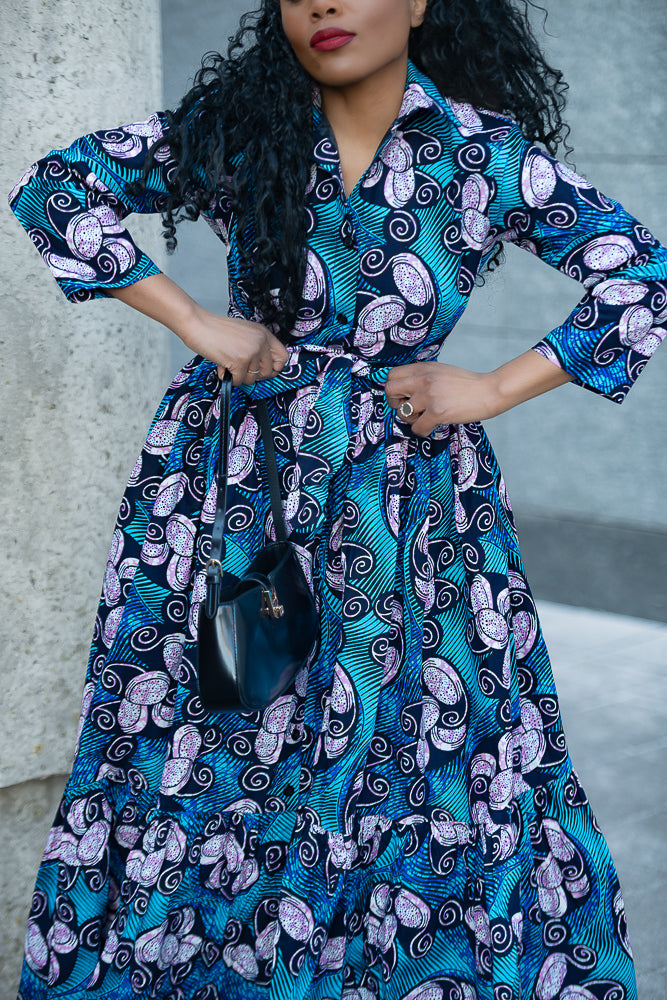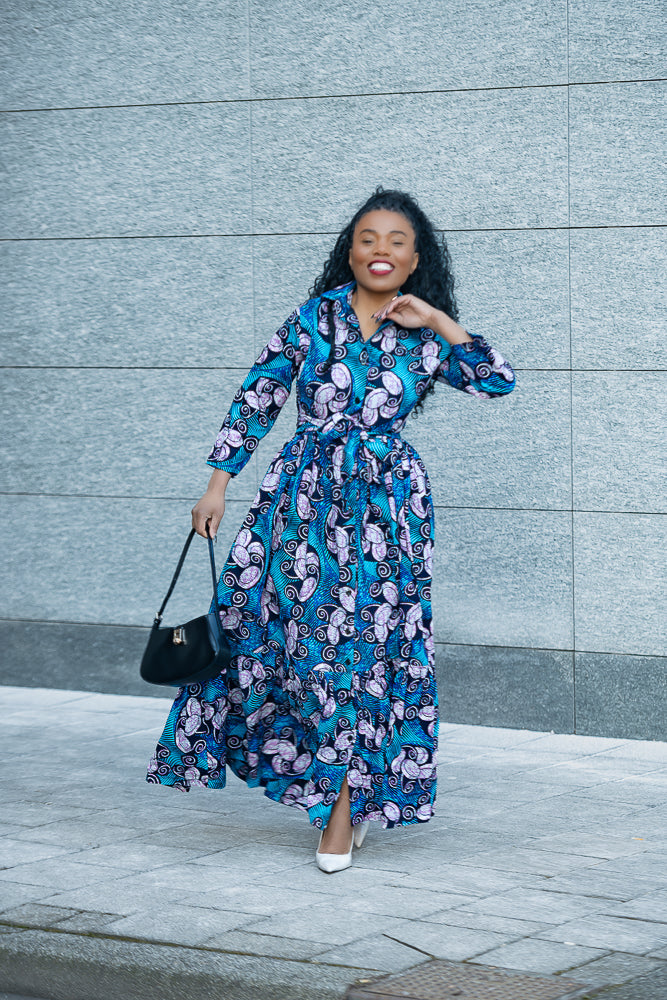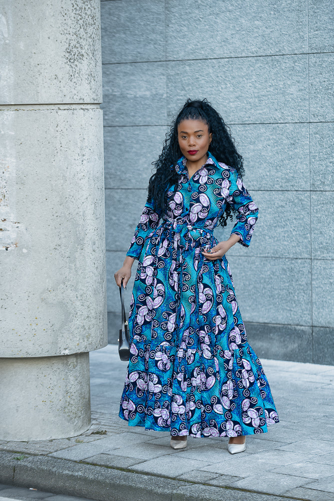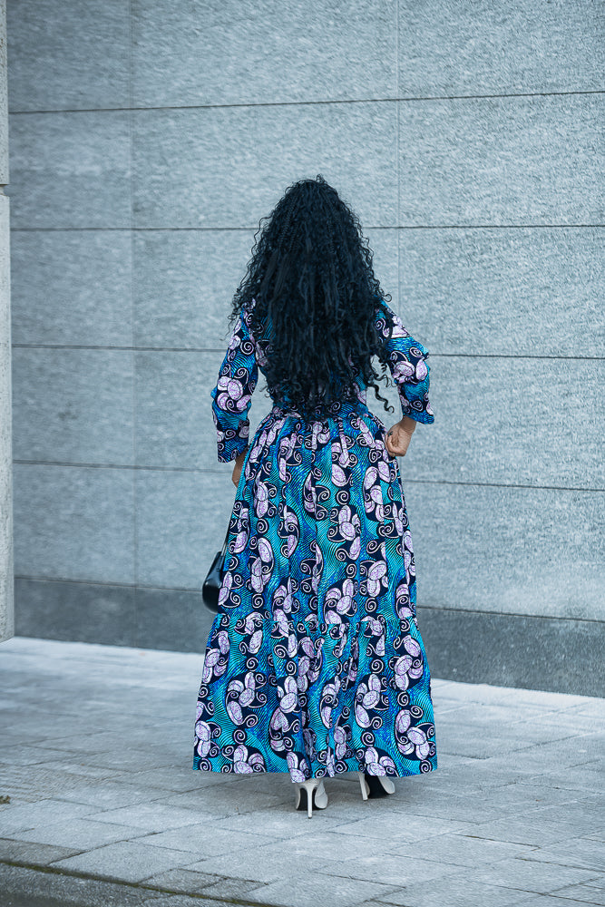 A standing ovation for this one in a million Nylah Blue Maxi Dress. Comfort, Style, and Uniqueness are prioritized. When you look good, you feel good is taken to a whole new level with the Nylah garment, whether in heels or flat shoes, you are guaranteed to stand out and be different!
