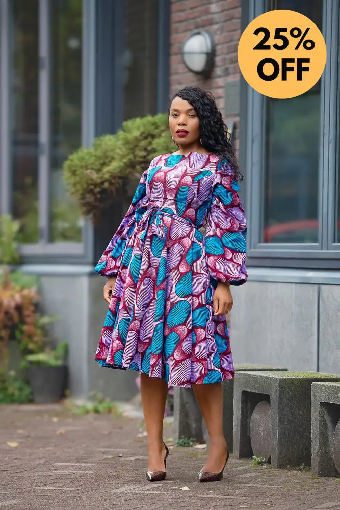 The dress is designed with a belt hugging the waistline and a flowy A-line shape and half-open back creates a stunning silhouette that complements all body types. The adorning fabric is perfect for summer, making the Bisi dress a versatile addition to your wardrobe. C'mon, girl it's written you all over it.