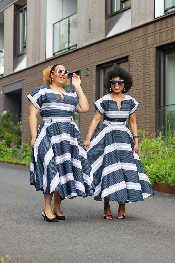 Have you ever fallen head over heels and found yourself in a bit of a "uh-oh, I'm in trouble" situation? Well, that's the exact sentiment you might be experiencing right now as you lay your eyes on the black and white striped Peju dress.
