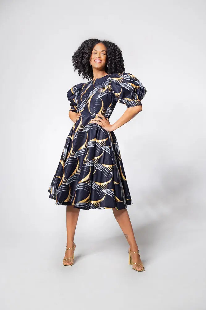 We are in awe of this gorgeous, timeless and comfortable piece. Nefertiti was a queen in her own rights, this vibrant piece of art will make you feel royal and fabulous. This dress will give you an instant GLOW UP! The print and design are a match made in heaven. You'll swirl and bask in the sun like a little princess, you will definitely connect with your inner girl in this beautiful dress.
