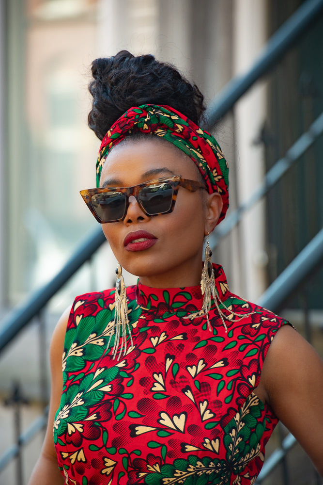 Our African headwraps are stylish, practical and keep hair tidy all day long. They are easy to wear and versatile adding a new dimension to your everyday wardrobe. As African fabrics are colorful, headwraps made from them can enhance a rather simple dress. They are best worn with and complement matching African print garments. They are a must have for every woman due to the ease and glamour they provide.