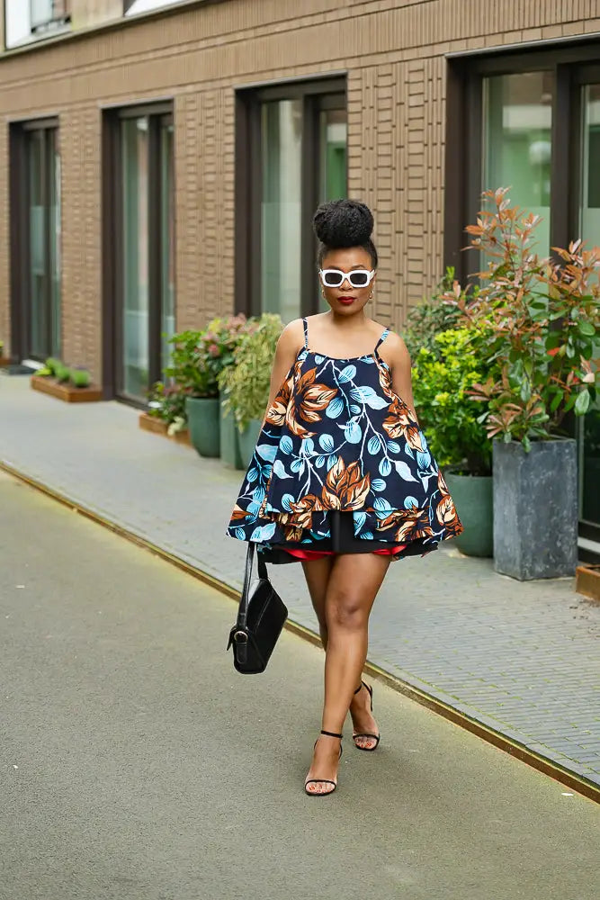 This spaghetti-strapped blouse with nicely laid folds is sure to turn heads, it is an eye-catching piece. It can be dressed down with slippers and shorts for hot summer days out or up with a trouser and heels for a nice evening out.