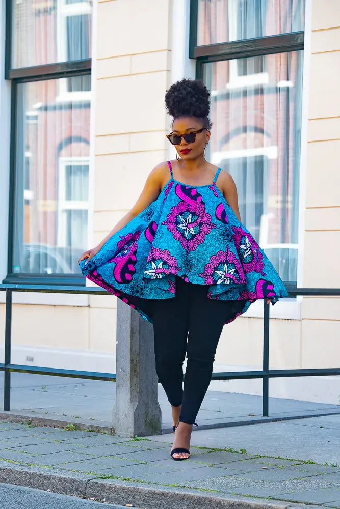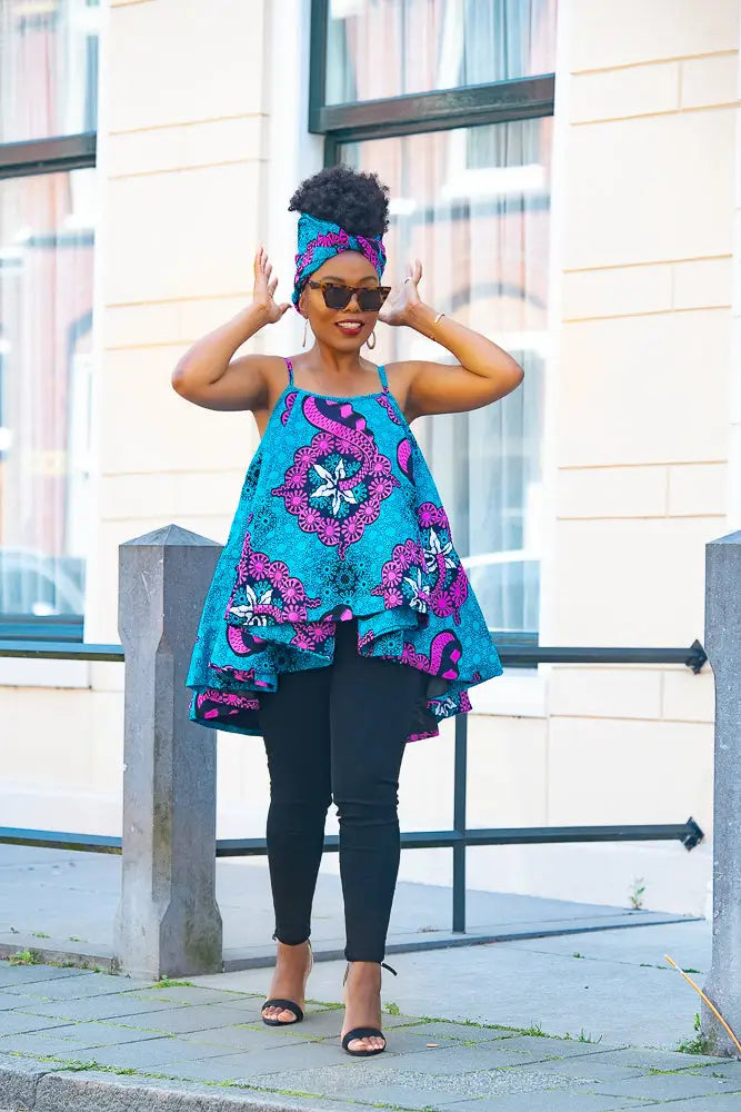This spaghetti-strapped blouse with nicely laid folds is sure to turn heads, it is an eye-catching piece. It can be dressed down with slippers and shorts for hot summer days out or up with a trouser and heels for a nice evening out.