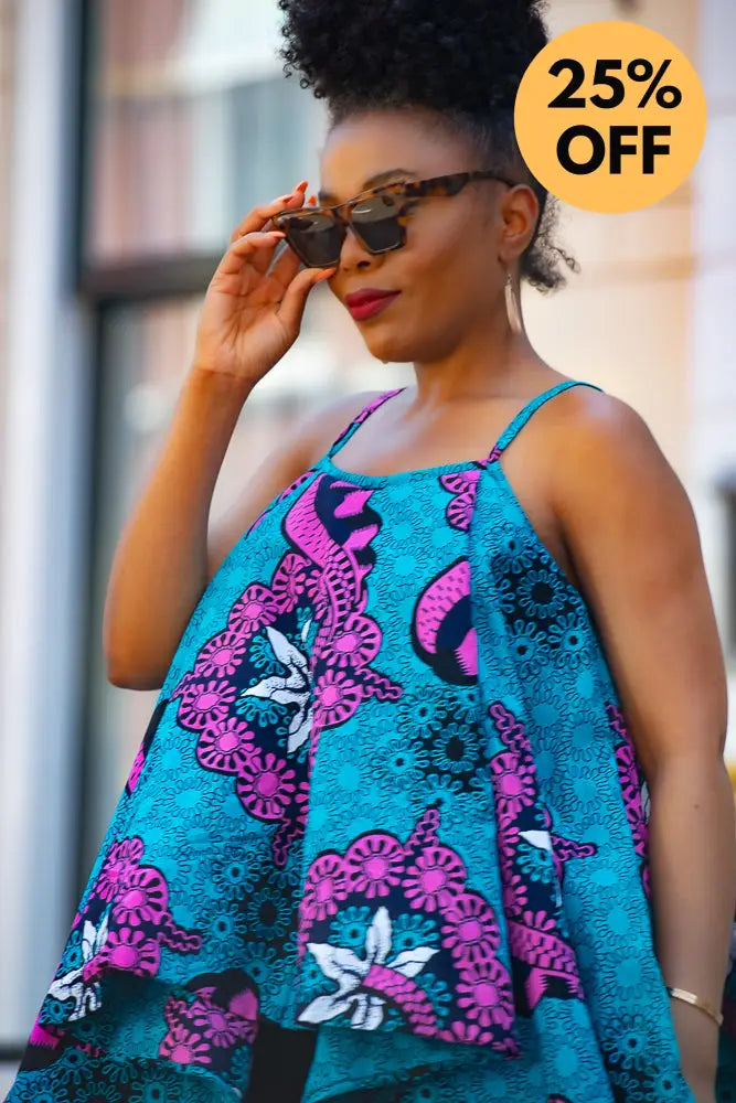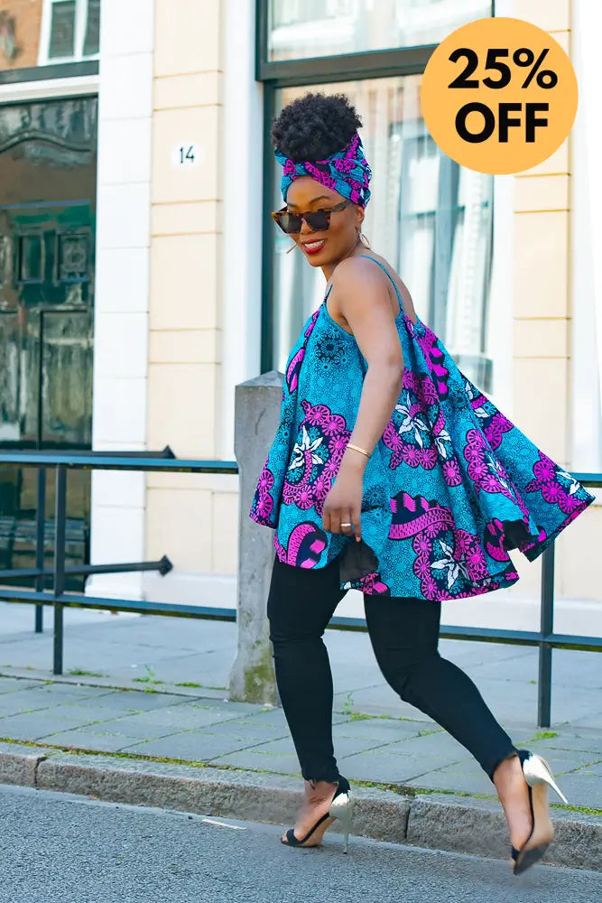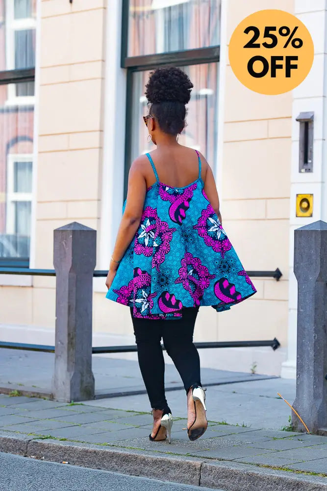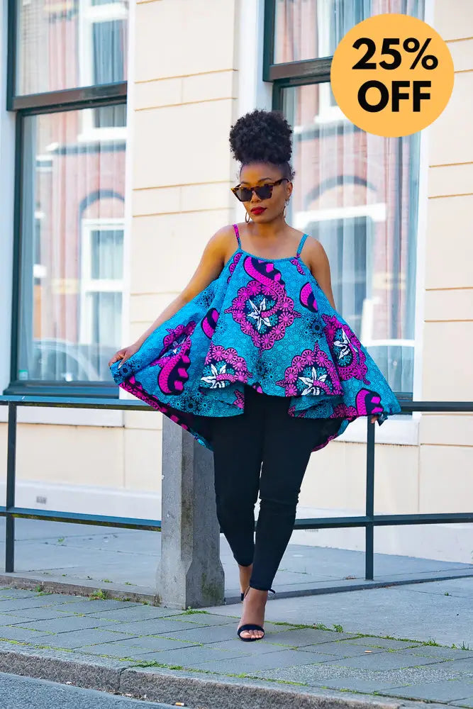 This spaghetti-strapped blouse with nicely laid folds is sure to turn heads, it is an eye-catching piece. It can be dressed down with slippers and shorts for hot summer days out or up with a trouser and heels for a nice evening out.