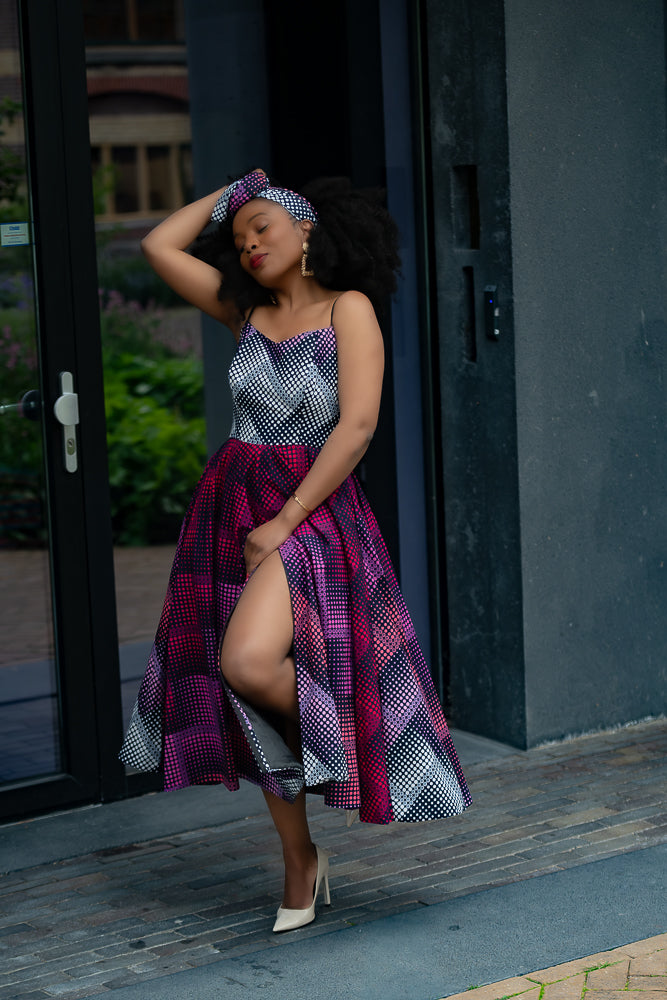 The queen is back! Our highly sought-after Lydia Dress, now back in stock in a new print due to popular demand! This dress is simply irresistible, and it's no wonder why it's our best-selling piece. Prepare to be mesmerized by its stunning beauty and undeniable charm. But here's the intriguing part: the Lydia Dress features a front invisible slit that allows you to adjust and control the amount of skin you want to show.